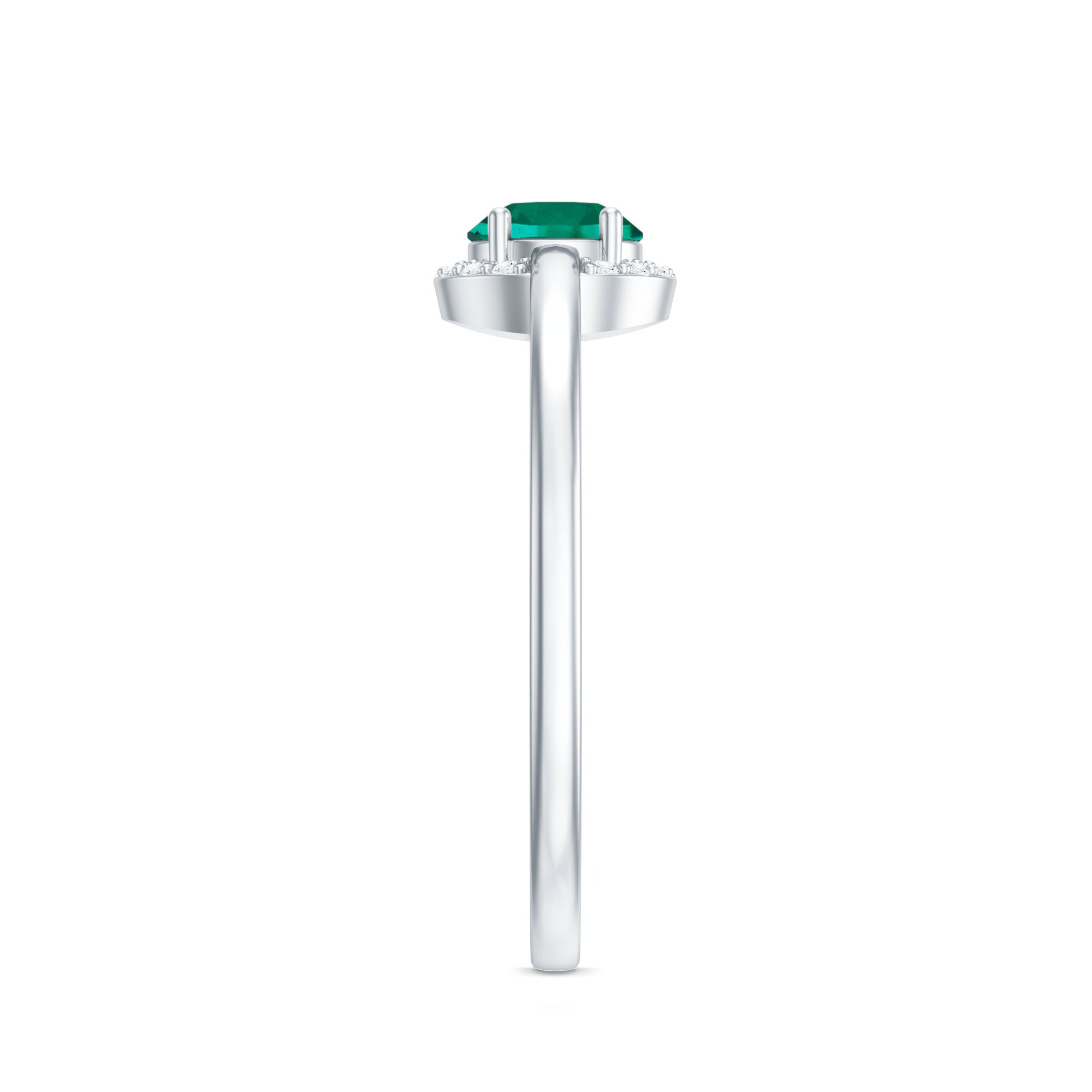 Certified 6 mm Lab Grown Emerald Promise Ring with Diamond Halo