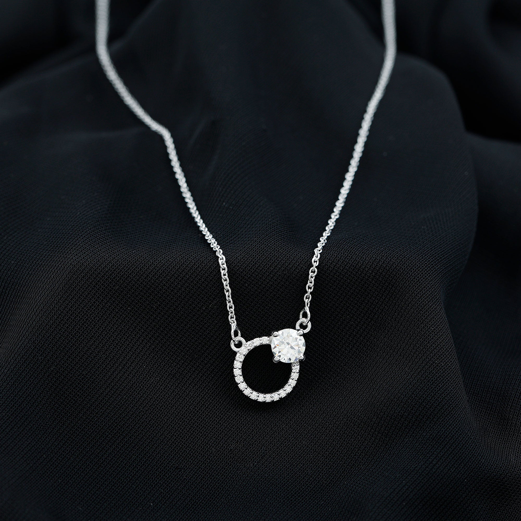 Certified 6 MM Round Moissanite Circle Necklace in Silver