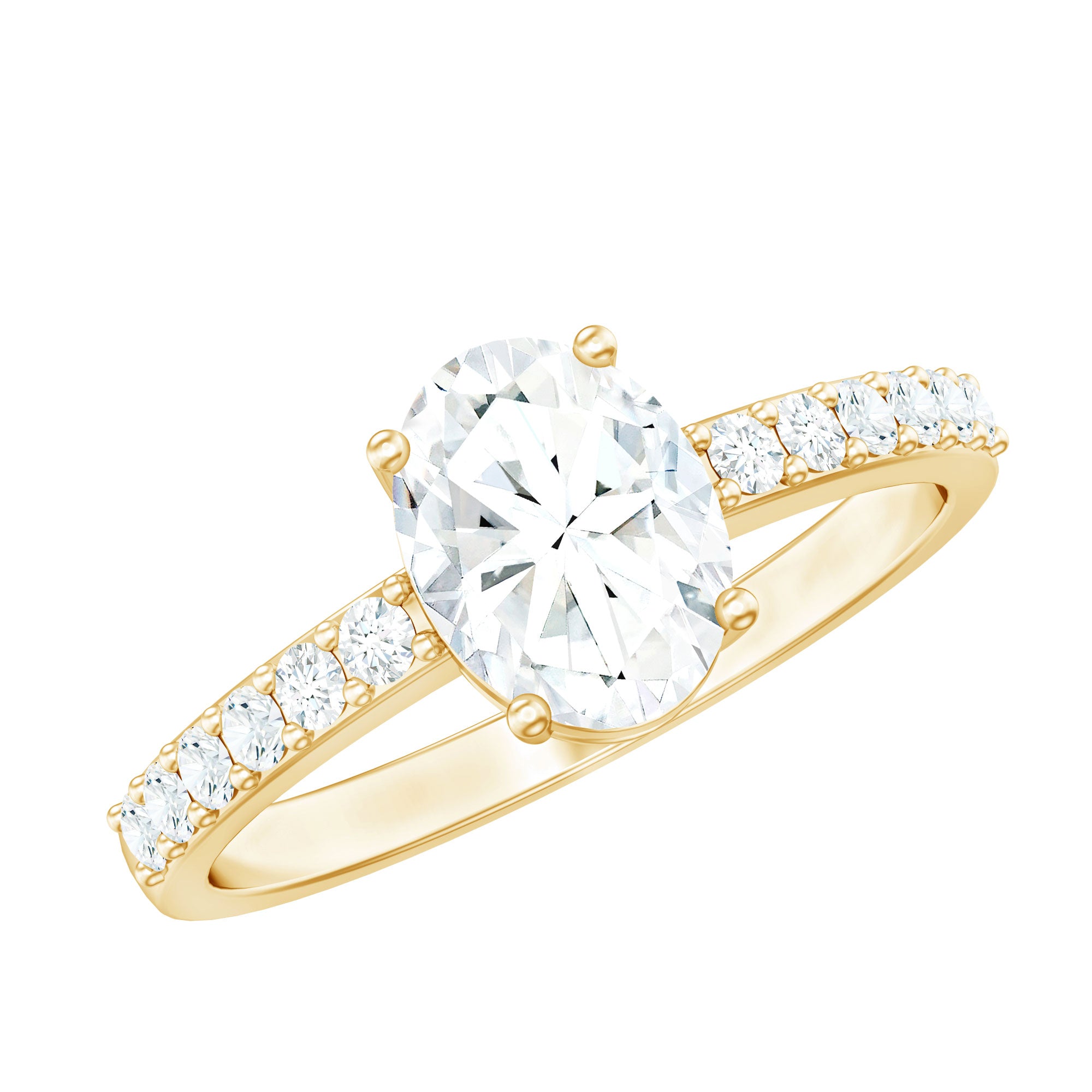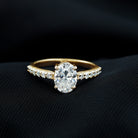 This ever so significant Lab Grown Diamond Ring is overwhelming which is sure to be her favorite piece of jewelry. Adorned with 6X8 MM Oval Shaped Lab Grown Diamond in Prong Setting, that beautifully sits in the center. The shank is adorned with petite Lab Diamond gemstones as Side Stones that burst with brilliance making it a timeless and statement accessory for the one close to your heart. As a harmonious blend of elegance, this Oval Engagement Ring creates an utterly romantic memory while sharing the enduring bond of love. The classical charm of the Diamond Engagement Ring has beautifully been crafted with a captivating sparkle by adding a touch of grace to your hand.