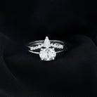 May your lifetime memory remain till eternity with this Diamond Wedding Ring Set which showcases unconditional love and unmatched sparkle. This stunning Bridal Ring Set is the epitome of elegance, featuring a breathtaking Solitaire Ring paired with a perfectly matching curved enhancer ring. The Engagement Ring showcases a 6X8 MM oval shaped lab made diamond of EF-VS quality securely set in a double claw prong setting in east-west style. Complementing the ring is a gracefully designed Chevron-style stackable ring, adorned with a dazzling combination of pear and round shaped diamonds in prong setting. This is an ideal Engagement Ring with Wedding Band for your lady as this duo symbolizes the unbreakable bond and eternal commitment you share.