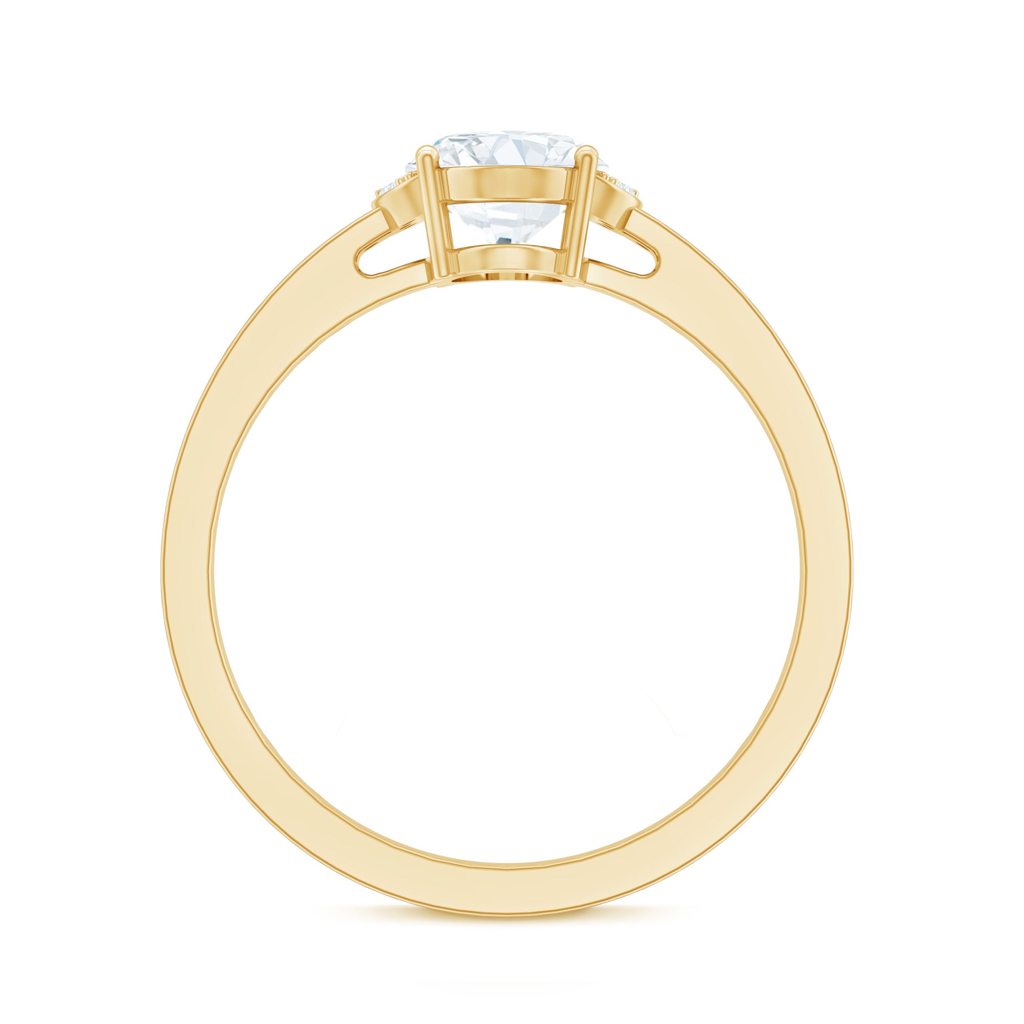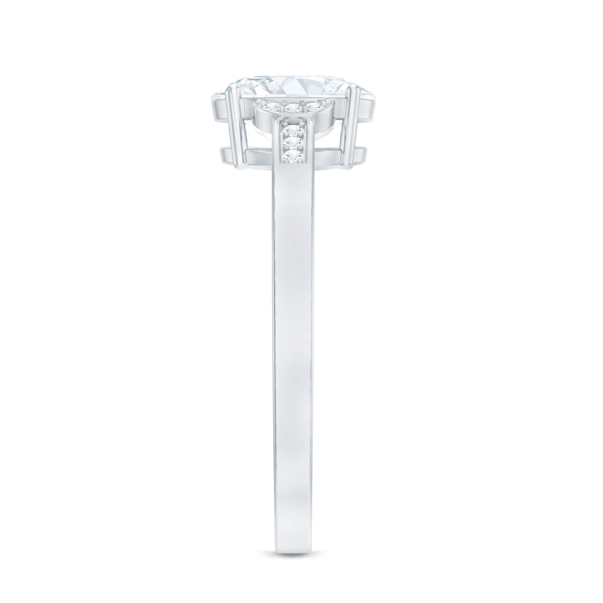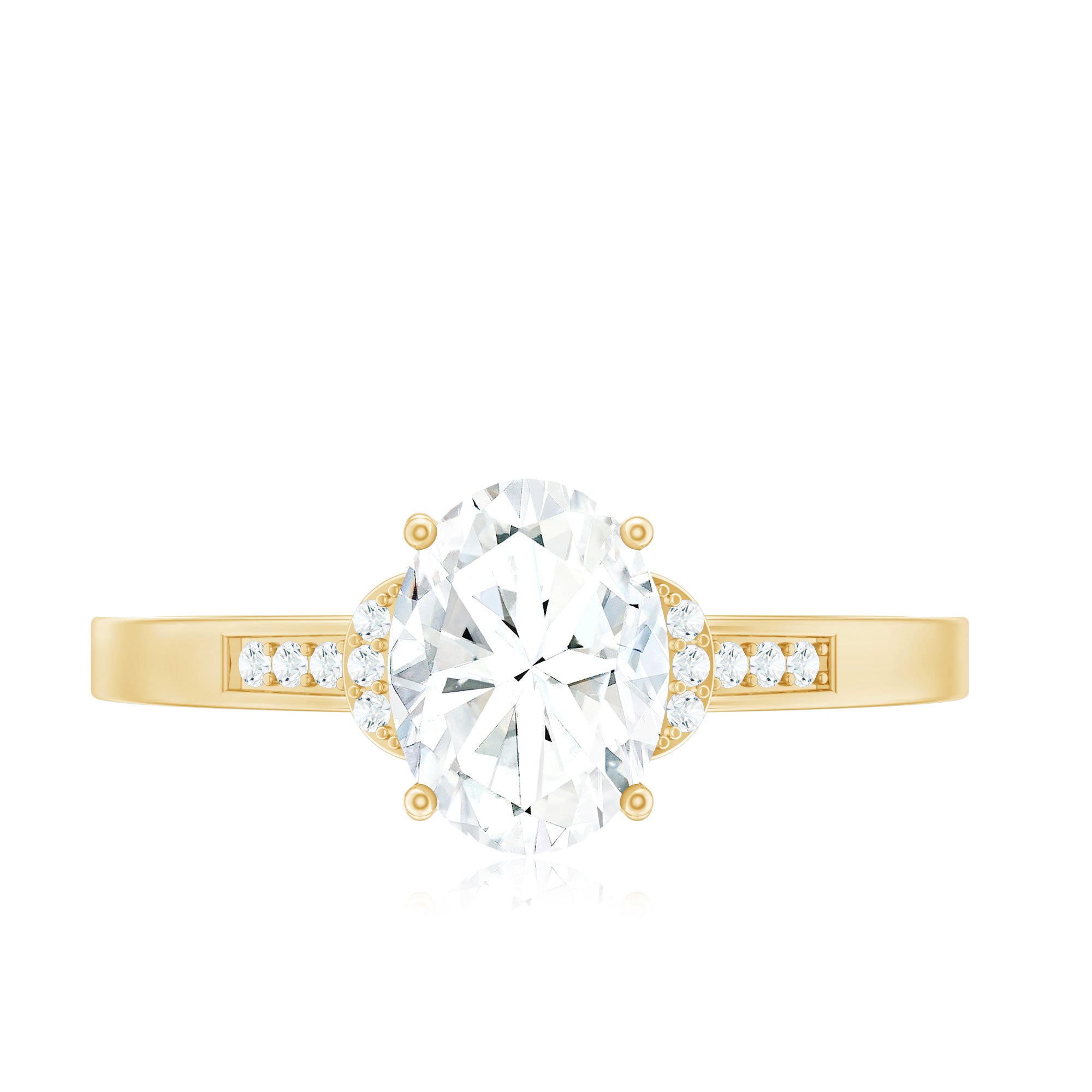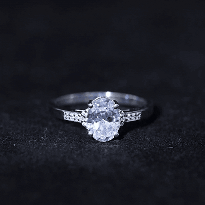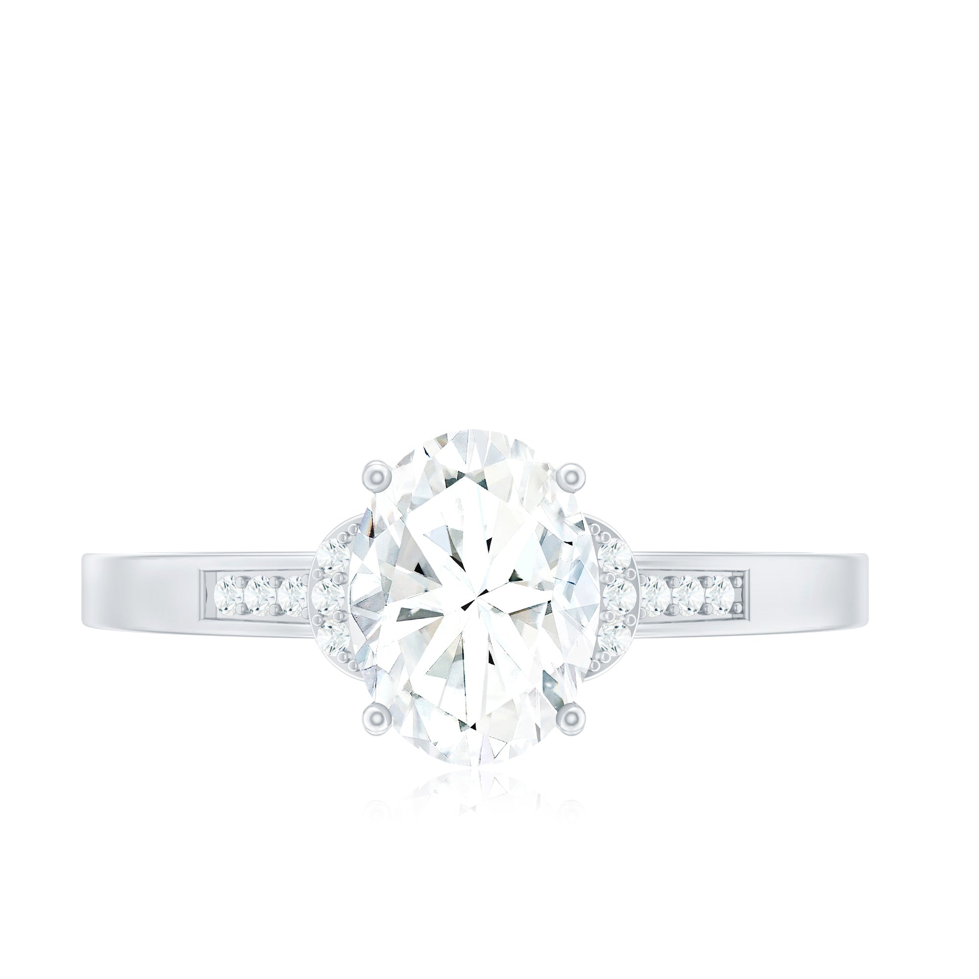Make your lady love stunned with the breathtaking beauty of our Diamond Engagement Ring on her big day. At its center, it features a 6X8 MM oval shaped diamond (EF-VS quality) set in prong setting, accompanied by round diamond accent on both sides of the center stone. Its simple yet elegant design makes it suitable for everyday wear as well as special occasions. This Oval Engagement Ring is more than just a symbol of love and passion, it shines with beauty and responsibility. We have created it with Lab Grown Gemstones, so not only does it look stunning but it is also environmentally friendly.
