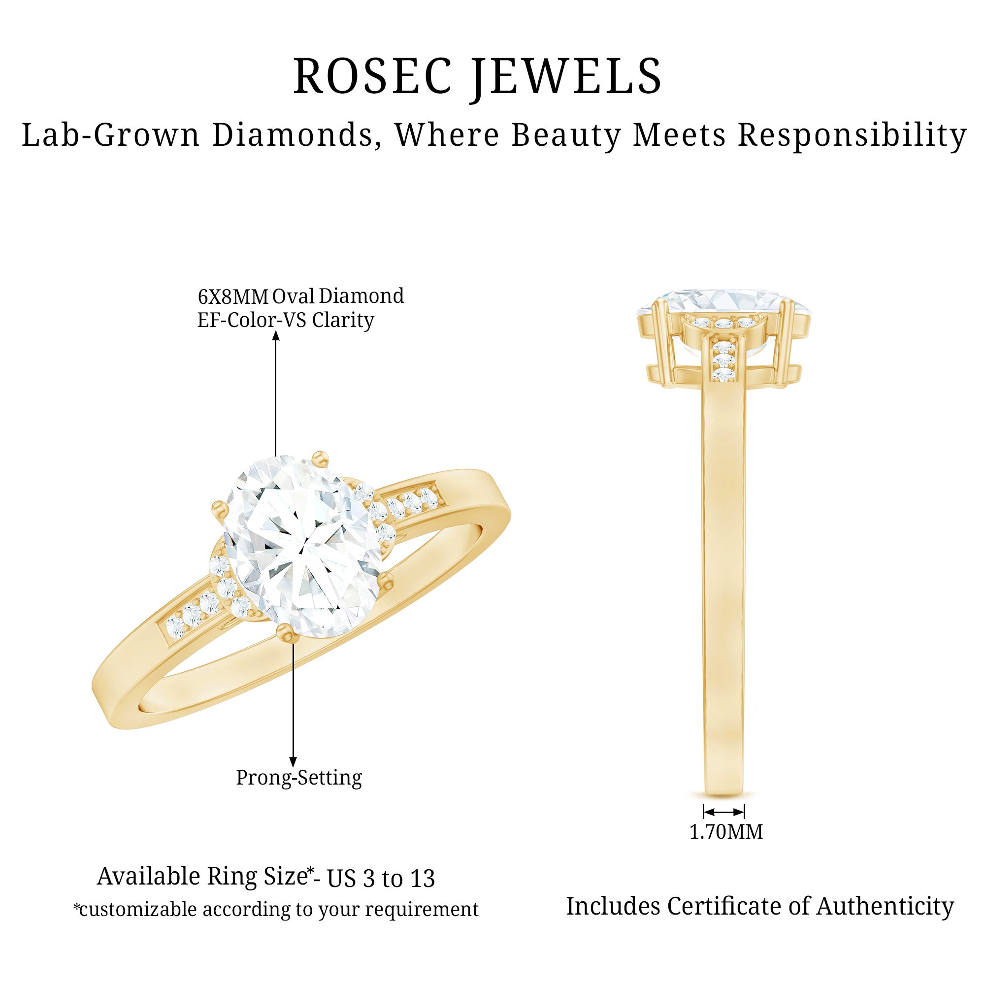 Certified 6X8 MM Oval Lab Grown Diamond Solitaire Engagement Ring