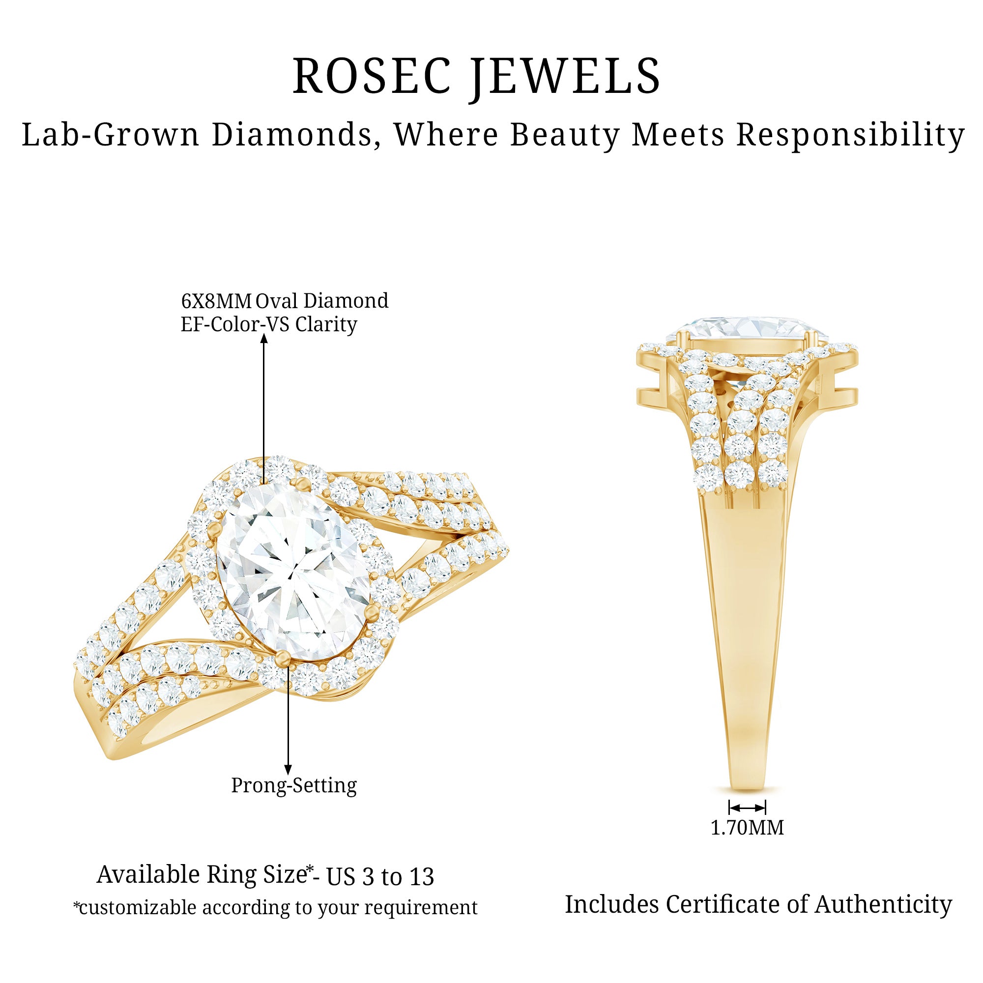 Certified 6X8 MM Oval Lab Grown Diamond Split Shank Engagement Ring