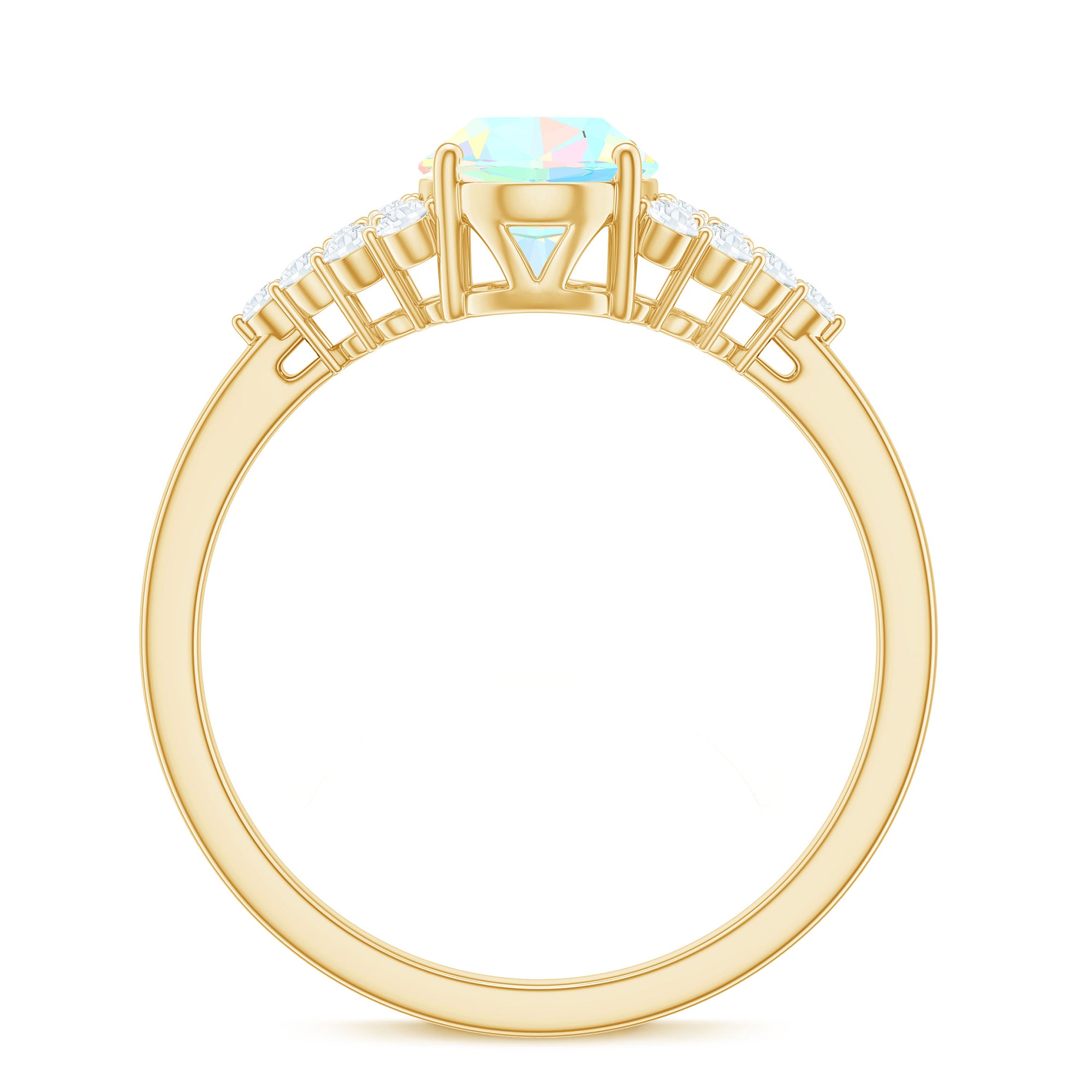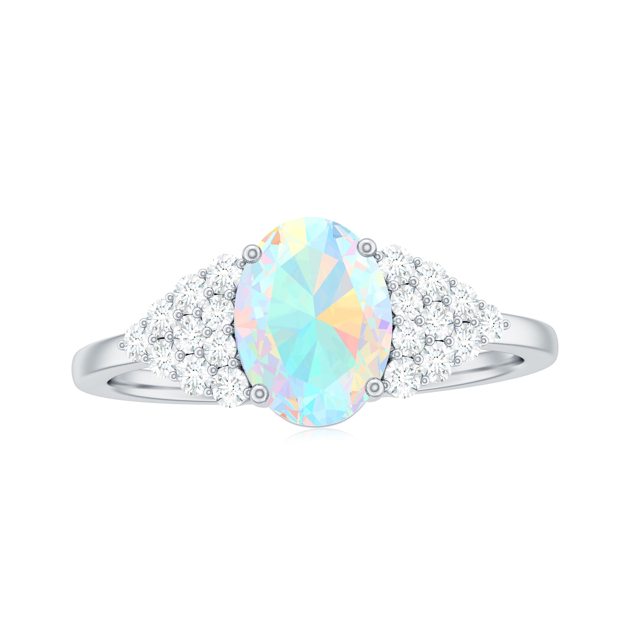 Fall in love with every color of forever in this Oval Engagement Ring, a radiant celebration of passion, promise and individuality. At its center, a captivating 6X8 mm Oval Shape Ethiopian Opal steals the spotlight with its mesmerizing play-of-color. Flanked by dazzling Diamond side stones, the natural iridescence of opal is elevated to a whole new level of sparkle, creating a look that is both timeless and unique. Whether you are planning a dreamy proposal or honoring a once-in-a-lifetime connection, this Opal Diamond Engagement Ring speaks volumes without saying a word. A perfect choice for those who seek a love that is anything but ordinary, this Oblong Engagement Ring comes in a range of ring sizes to ensure a flawless fit and arrives in a beautiful jewelry box. Ethereal, elegant and effortlessly stunning, this Opal Solitaire Ring is a reflection of your one-of-a-kind love.