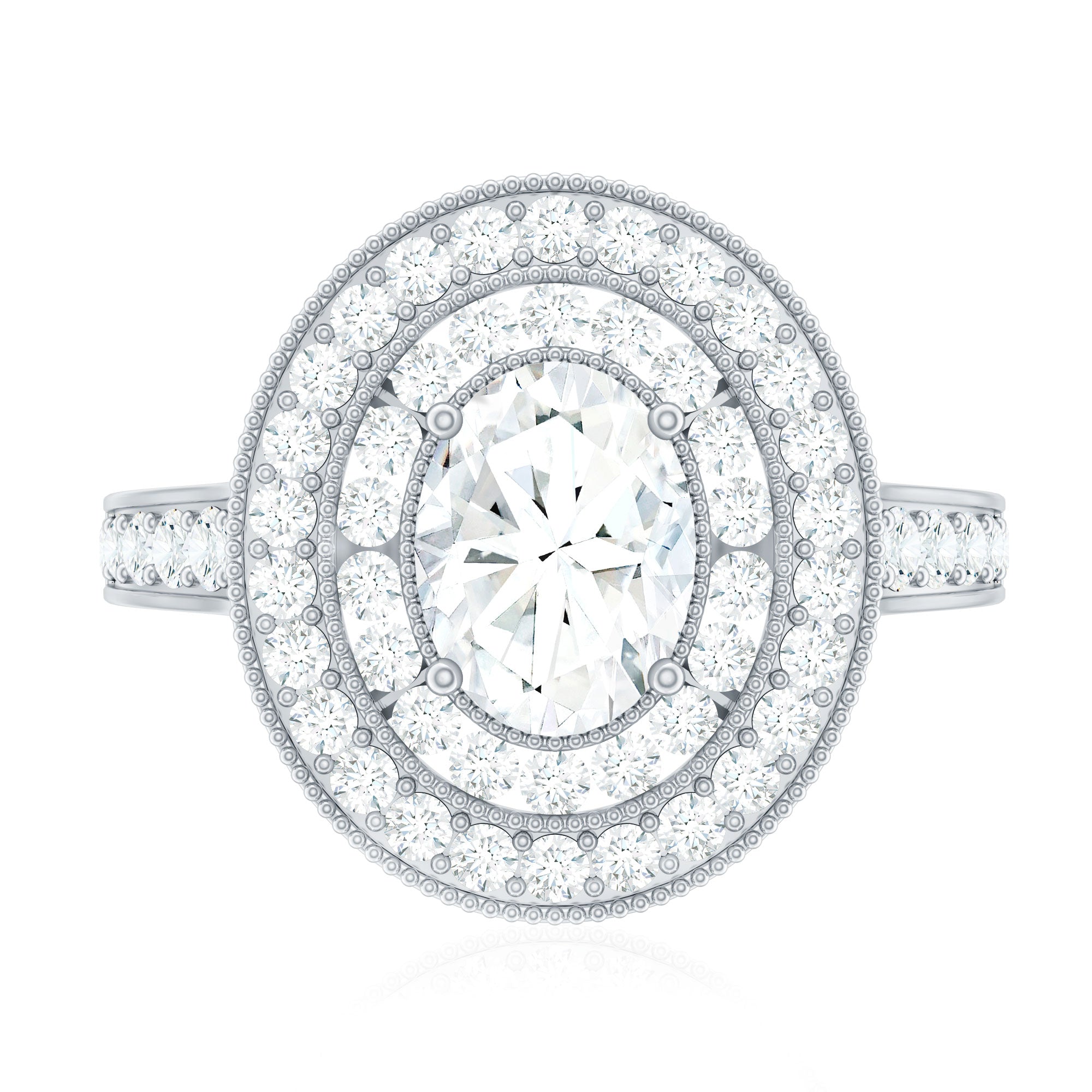 Certified 6X8 MM Oval Lab Grown Diamond Double Halo Engagement Ring