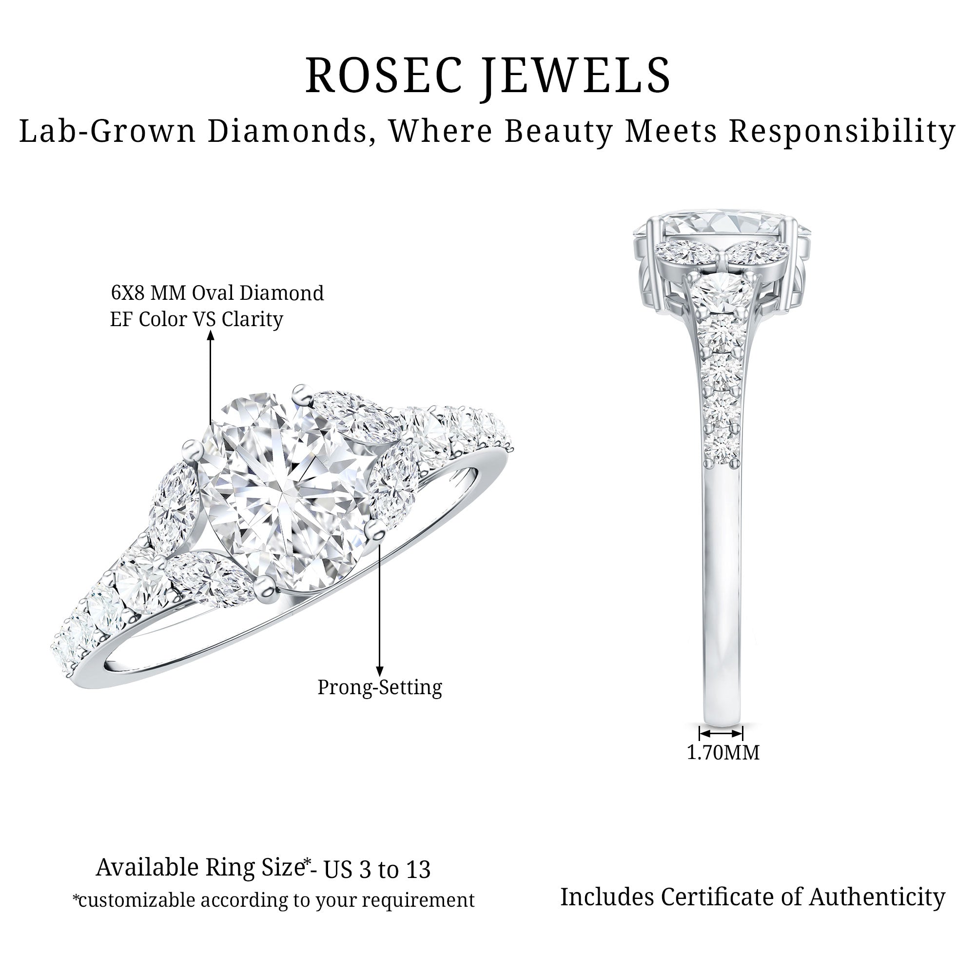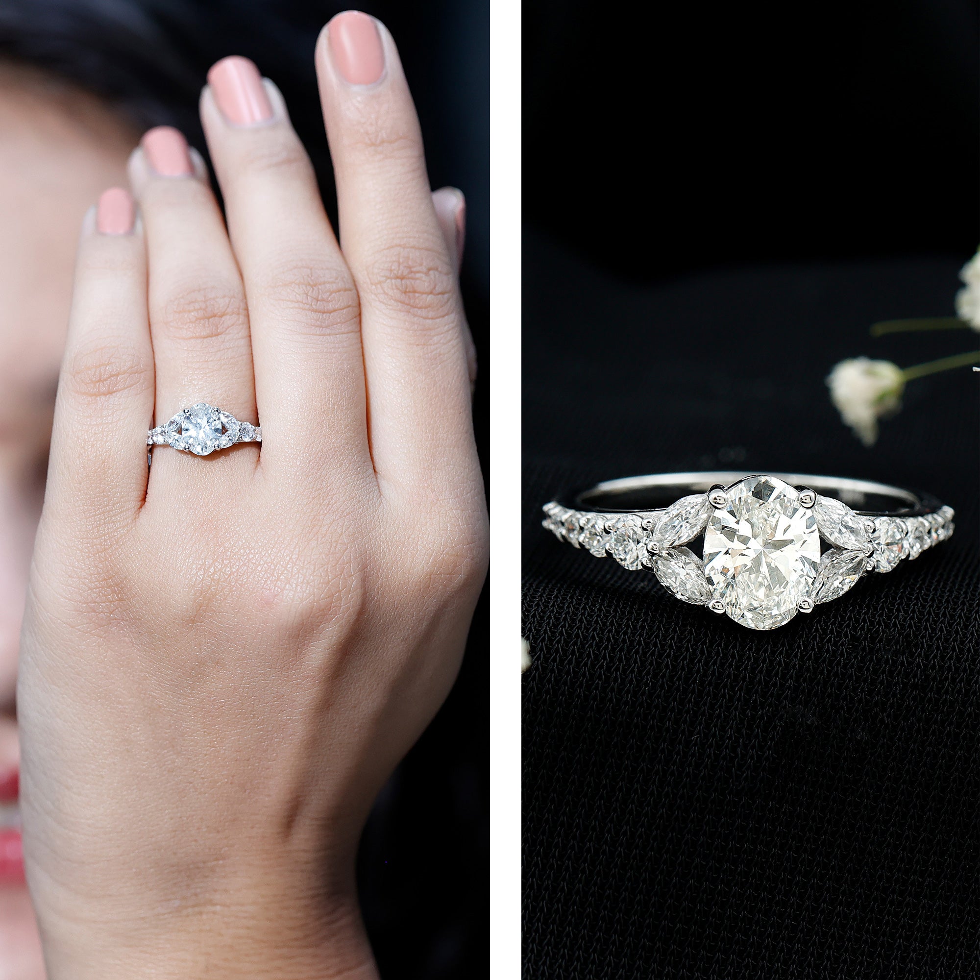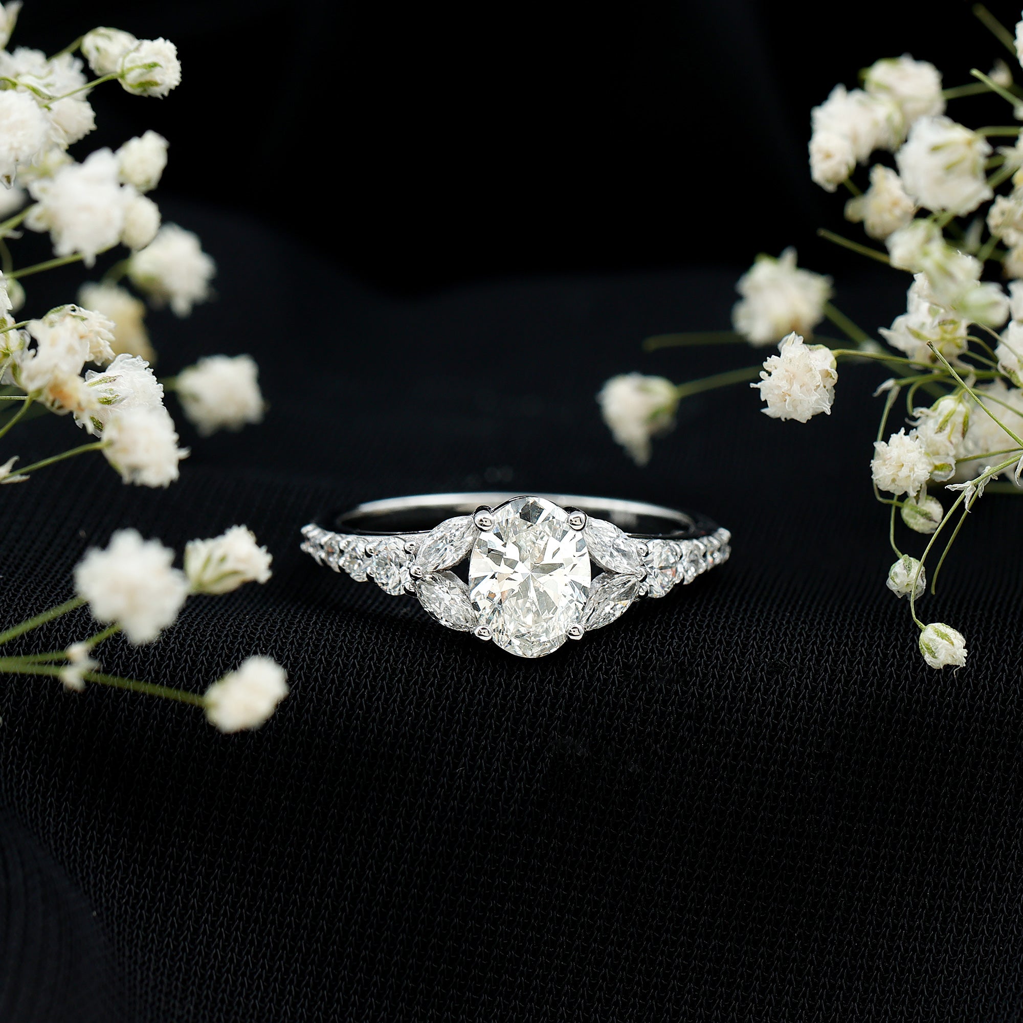 Certified 6X8MM Oval Lab Grown Diamond Engagement Ring With Side Stones