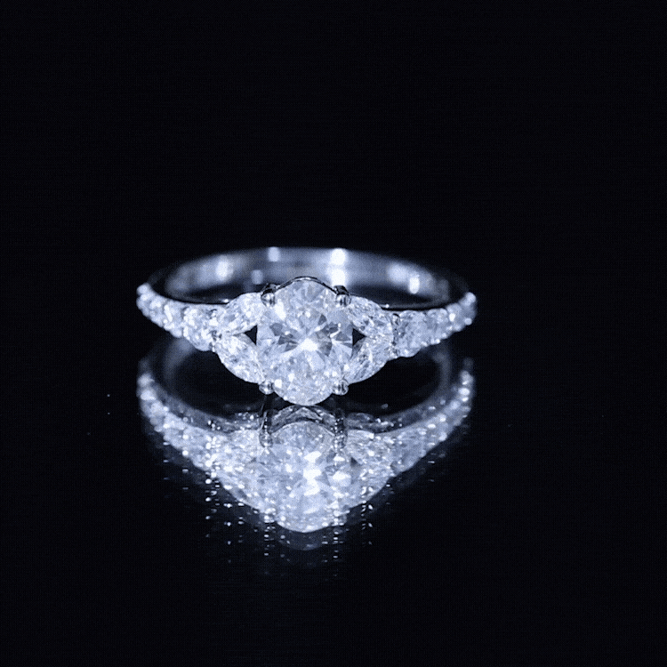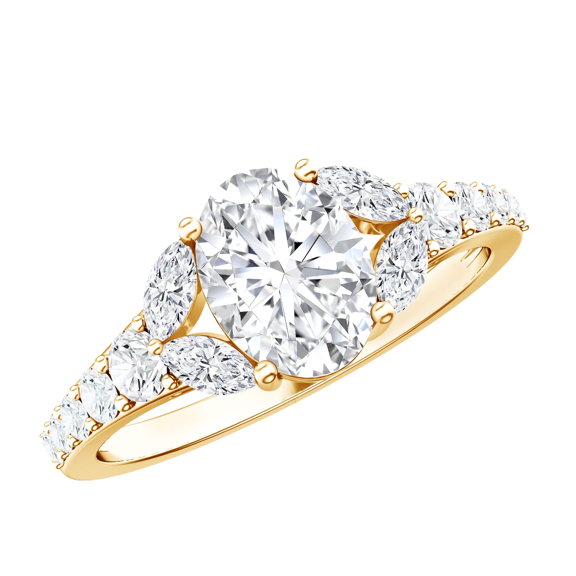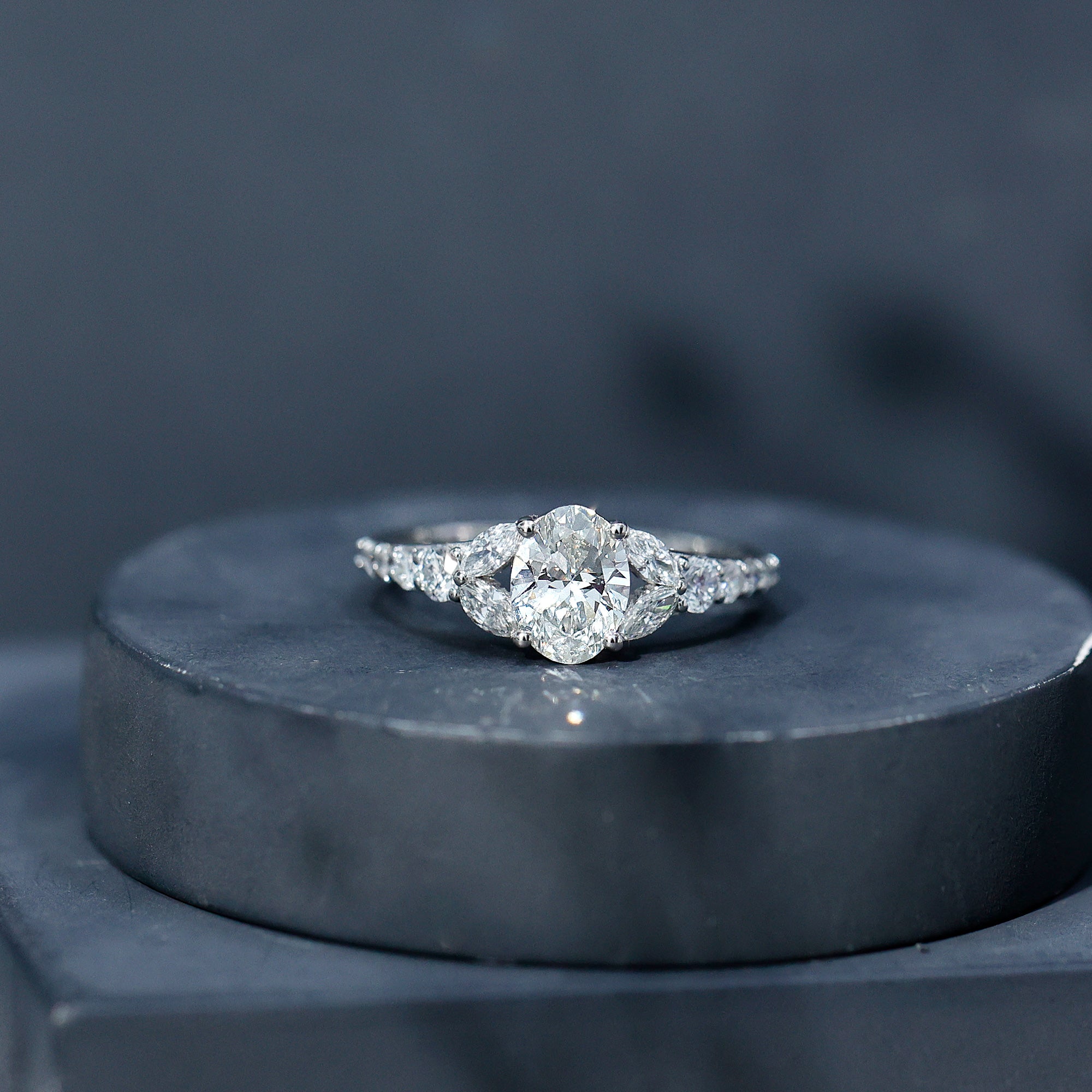 Certified 6X8MM Oval Lab Grown Diamond Engagement Ring With Side Stones