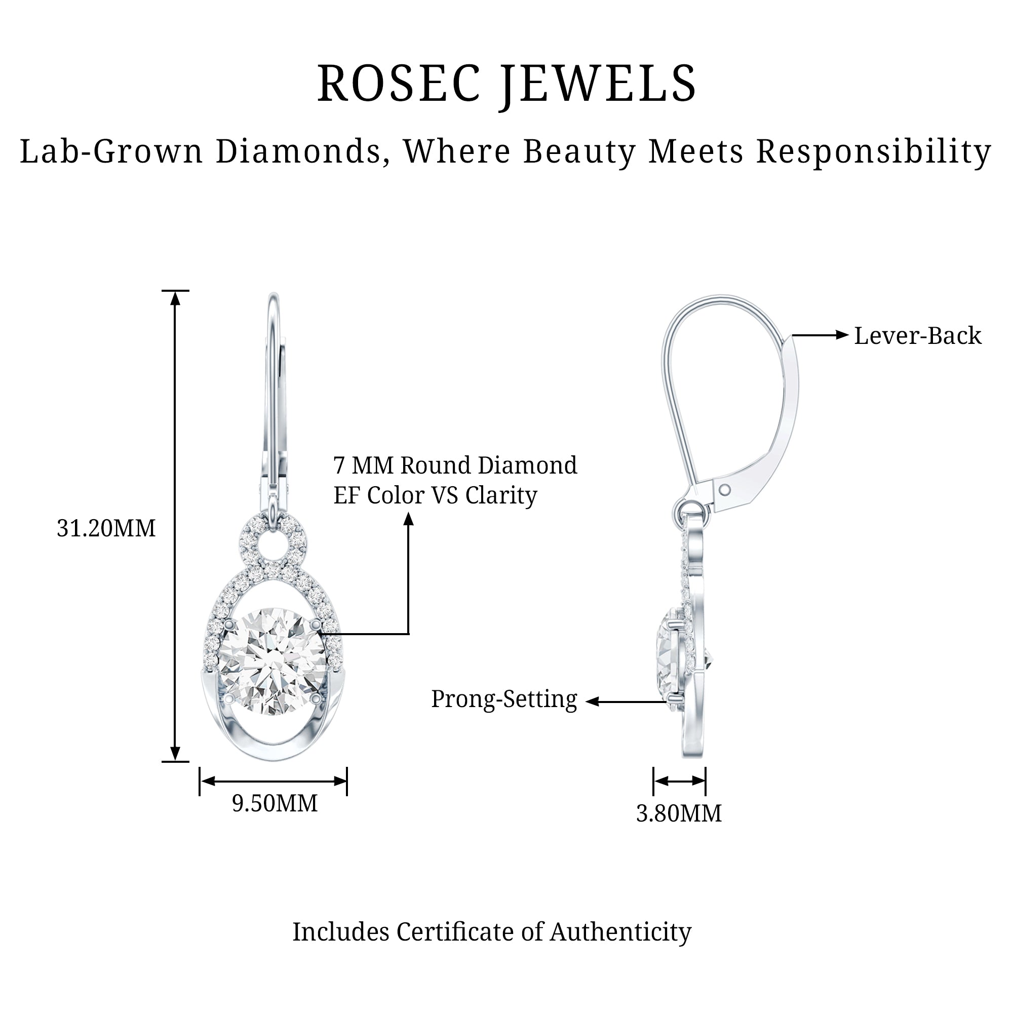 Searching for the perfect gift that will make her shine - our Diamond Drop Earrings got you covered. These Oval Drop Earrings features a stunning 7 MM round shaped lab grown diamond of EF-VS Quality, set in a prong setting in the center of an open oval shape that is decorated with dainty stones. With a lever-back closure, these Cocktail Earrings are easy to wear and stay securely in place throughout the day and evening. Dress up your ears with these stunning Round Diamond Earrings that elevate the outfit in mere seconds. These pocket friendly April Birthstone Earrings also make the perfect birthday present for your loved ones. They come with a certificate of authenticity and a signature jewelry box.