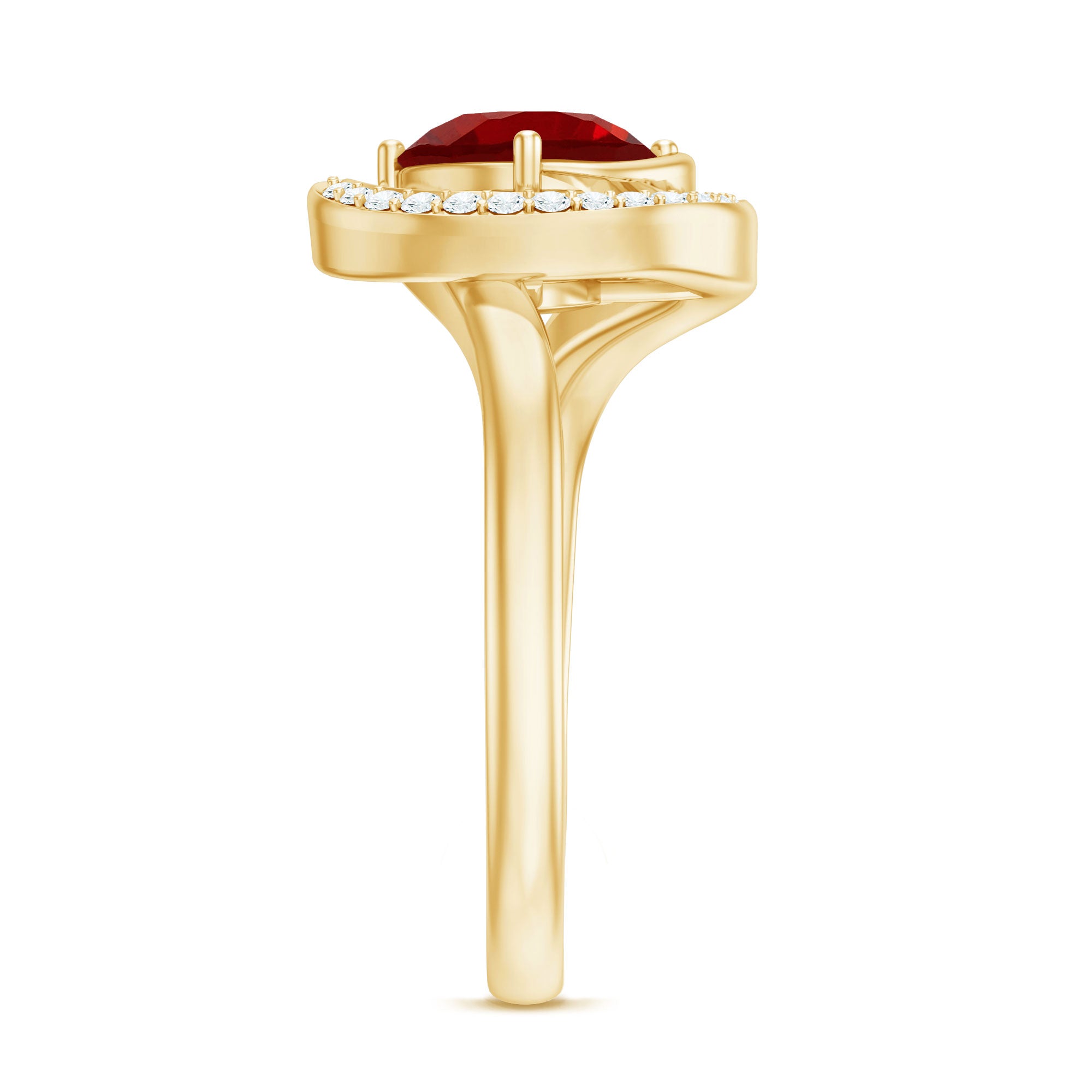 Certified 7MM Lab Created Ruby Engagement Ring with Diamond Half Halo