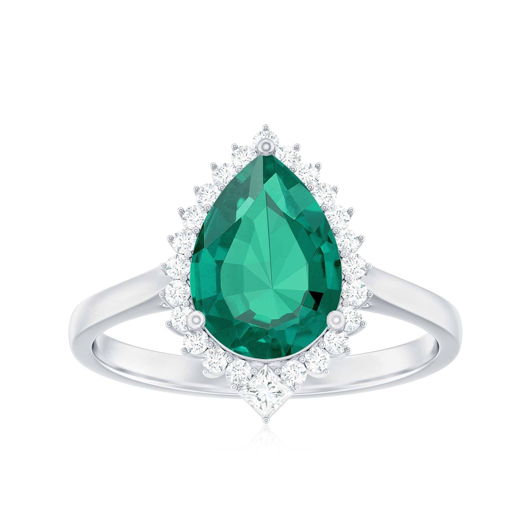 Certified 7X10 mm Lab Grown Emerald Teardrop Engagement Ring with Diamond Halo