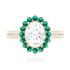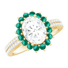 Certified 7X9 mm Oval Moissanite Engagement Ring with Emerald Halo