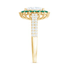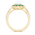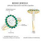 For those who seek elegance, this Oval Moissanite Engagement Ring is a true showstopper. At the heart of this stunning design is a shimmering 7X9 mm Oval Shape Moissanite of D-VS1 Quality set in Prong Setting, known for its fiery sparkle and exceptional clarity. The Moissanite captures light in every direction, that makes this Oval Engagement Ring a perfect symbol of your bright and enduring love. Surrounding the center stone is a halo of Lab Created Emerald stones, their deep green color creating a striking contrast against the sparkling Moissanite. Adding further brilliance, the band is studded with additional Moissanite stones, ensuring that every angle of this Moissanite Oval Ring for Engagement shines with breathtaking light. The blend of the Moissanite and the Lab Emerald creates a harmonious balance of color, light, and luxury. This Engagement Ring with Moissanite is a statement of love and commitment with a fresh twist on classic elegance. Delivered in a signature jewelry box and available in various US ring sizes, this Halo Engagement Ring with Moissanite is ready to make a lasting impression, a piece that is as unique and radiant as your love story.