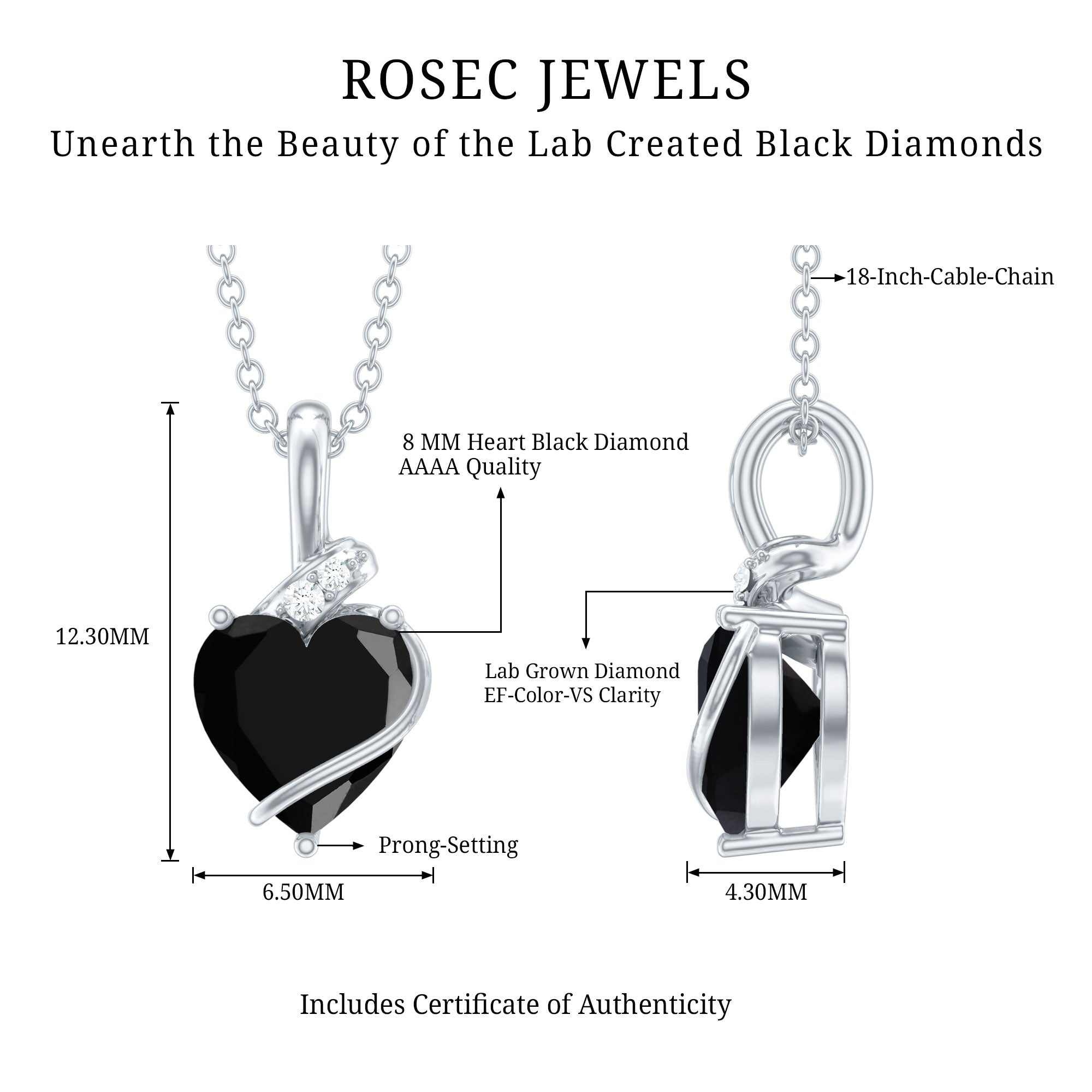 Certified 8 MM Lab Grown Black Diamond Heart Necklace