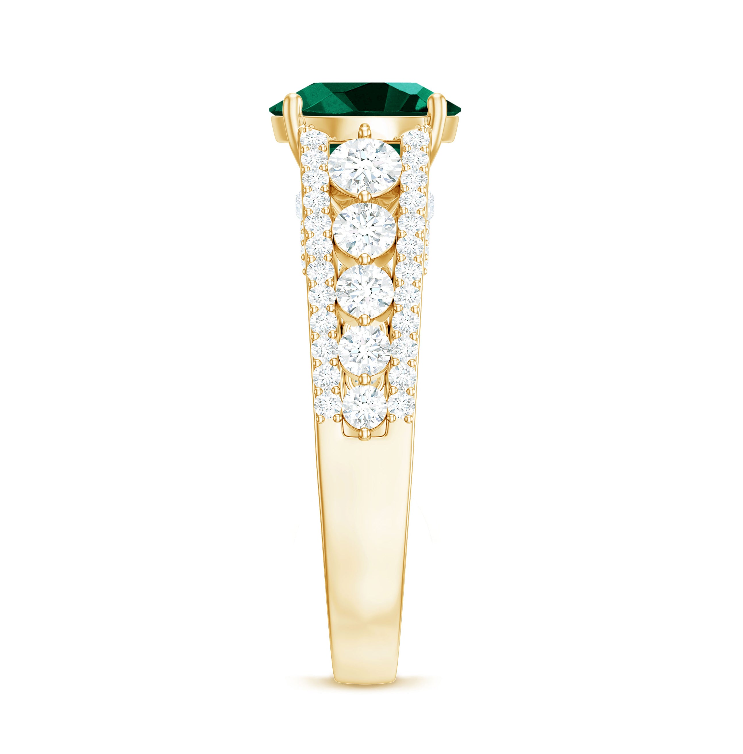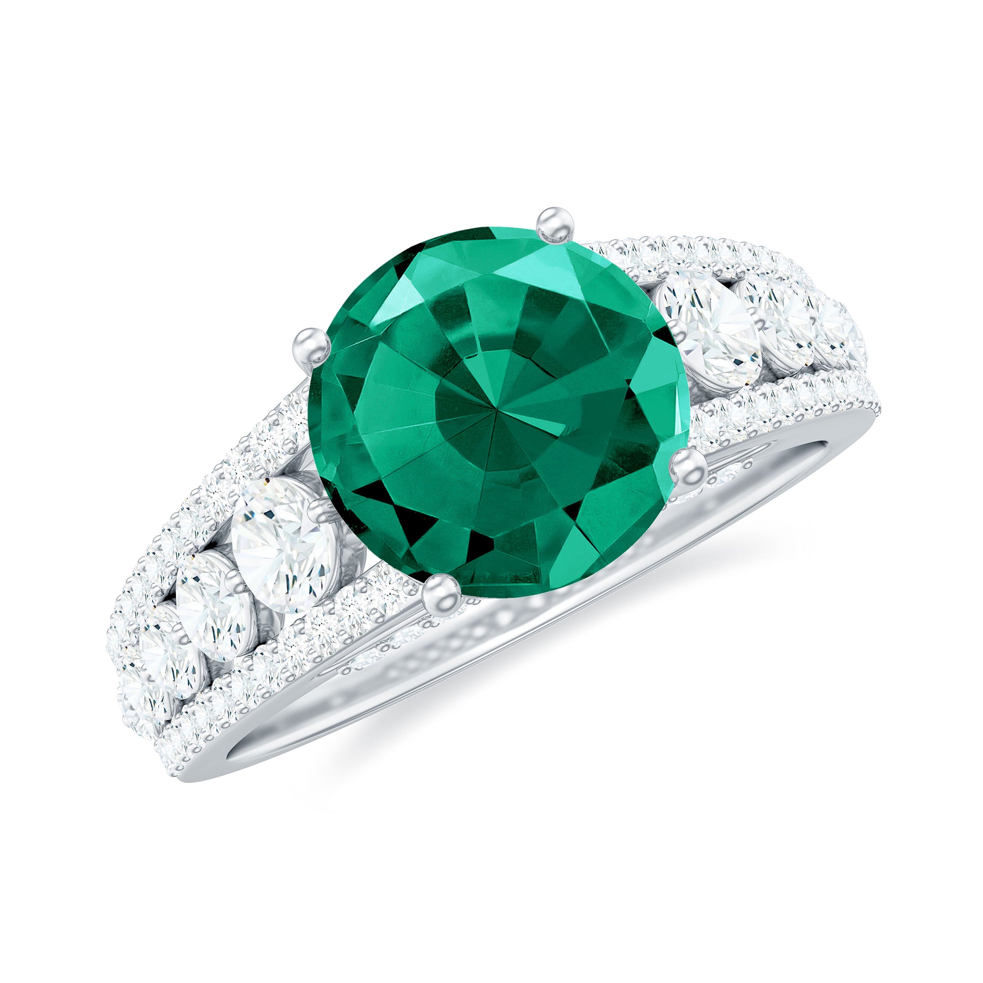 Certified 8 mm Lab Grown Emerald Statement Engagement Ring with Side Stones
