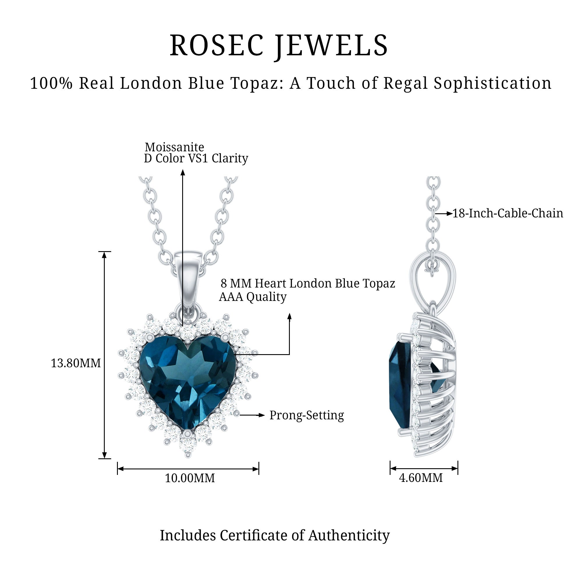 Certified 8 MM London Blue Topaz Heart Pendant with Moissanite Halo