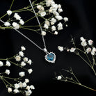 Get her this London Blue Topaz Pendant and witness a priceless reaction. The pendant is crafted with 14K White Gold Plated Silver and features an 8 MM Heart Shape London Blue Topaz securely placed in Prong Setting and encircled by a Halo of Moissanite stones. The pendant dazzles with a classic shine of AAA Quality London Blue Topaz and D-VS1 Quality Moissanite. This Heart Pendant is accentuated with a standard bail and dangles with a sturdy cable chain, which makes it beautifully sit on the neckline. This Halo Pendant will be shipped to you in a premium quality velvet pouch with a certificate of authenticity.