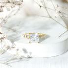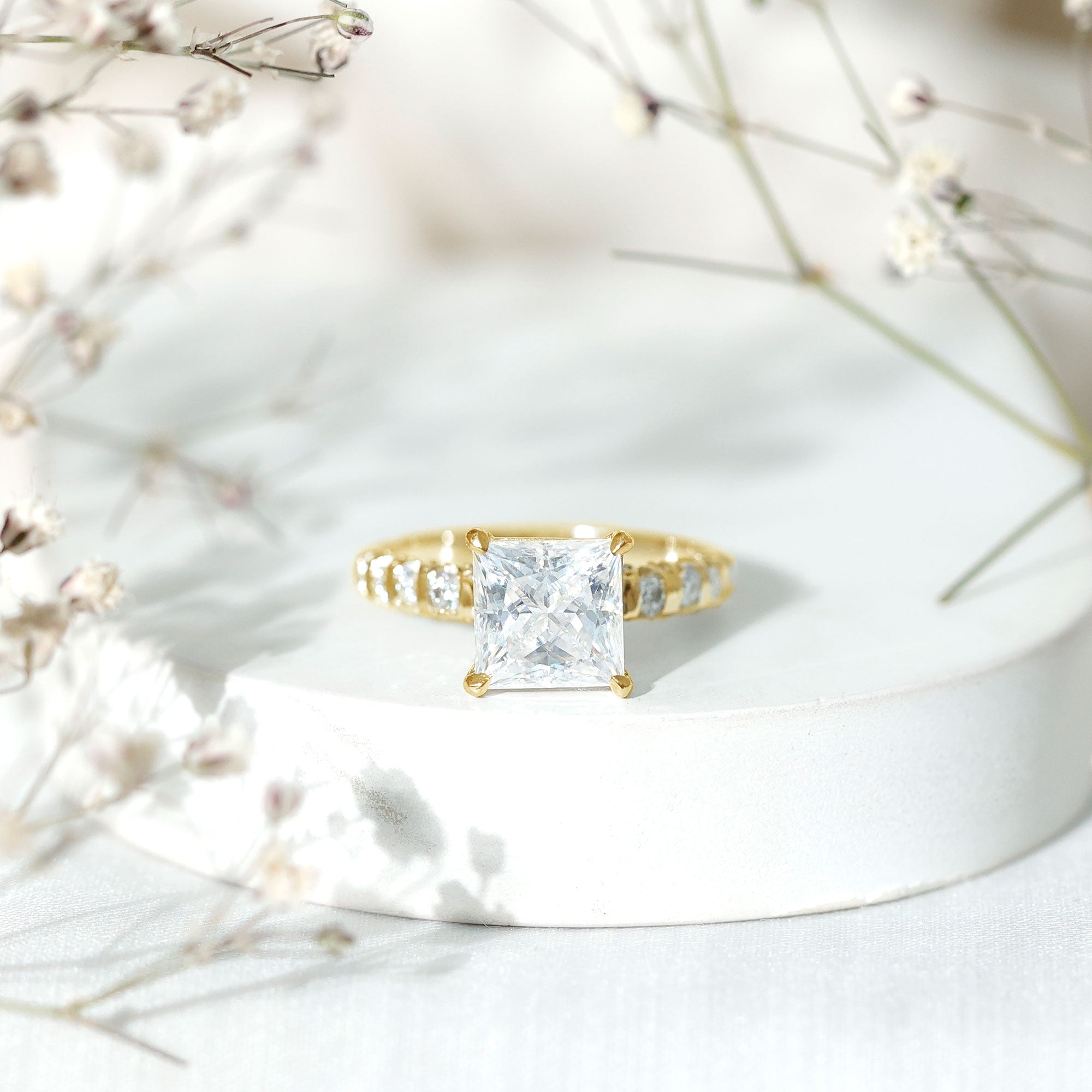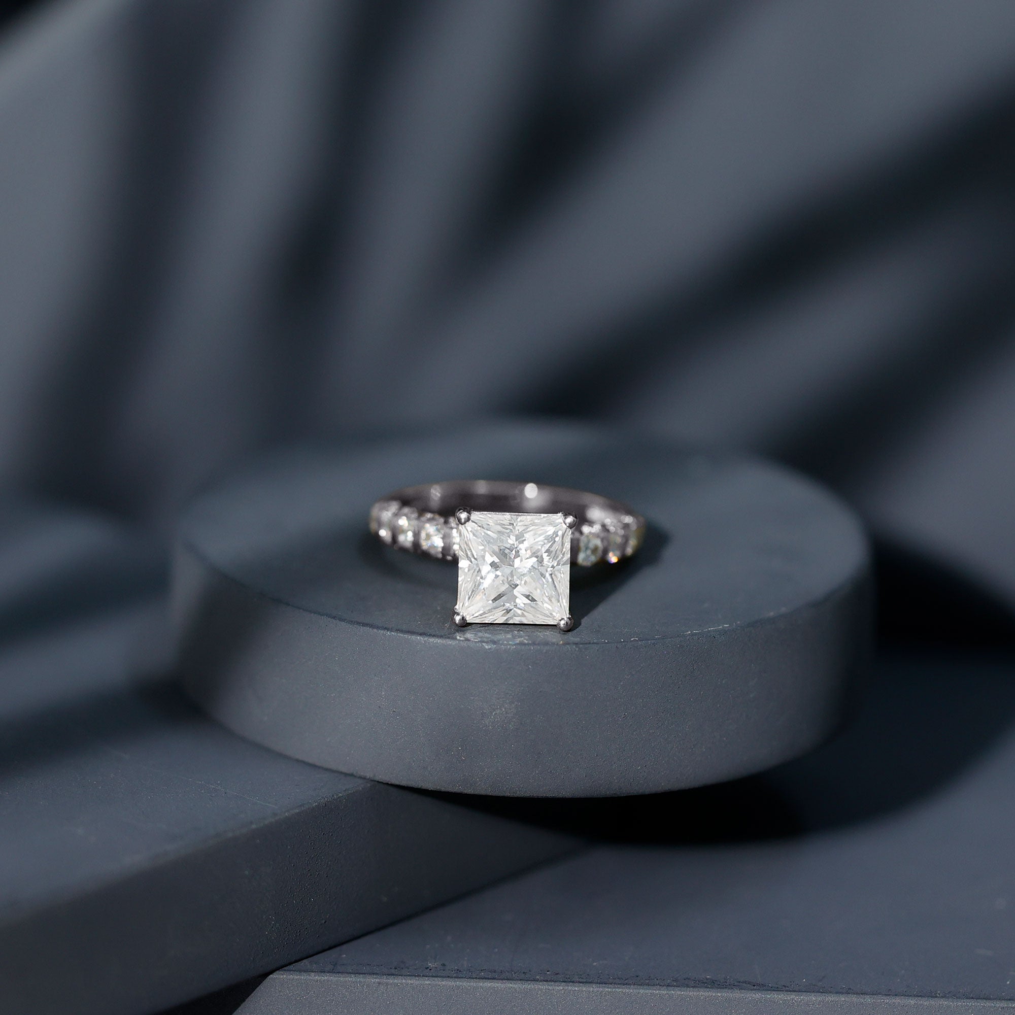 Certified 8 MM Moissanite Princess Cut Engagement Ring with Side Stones