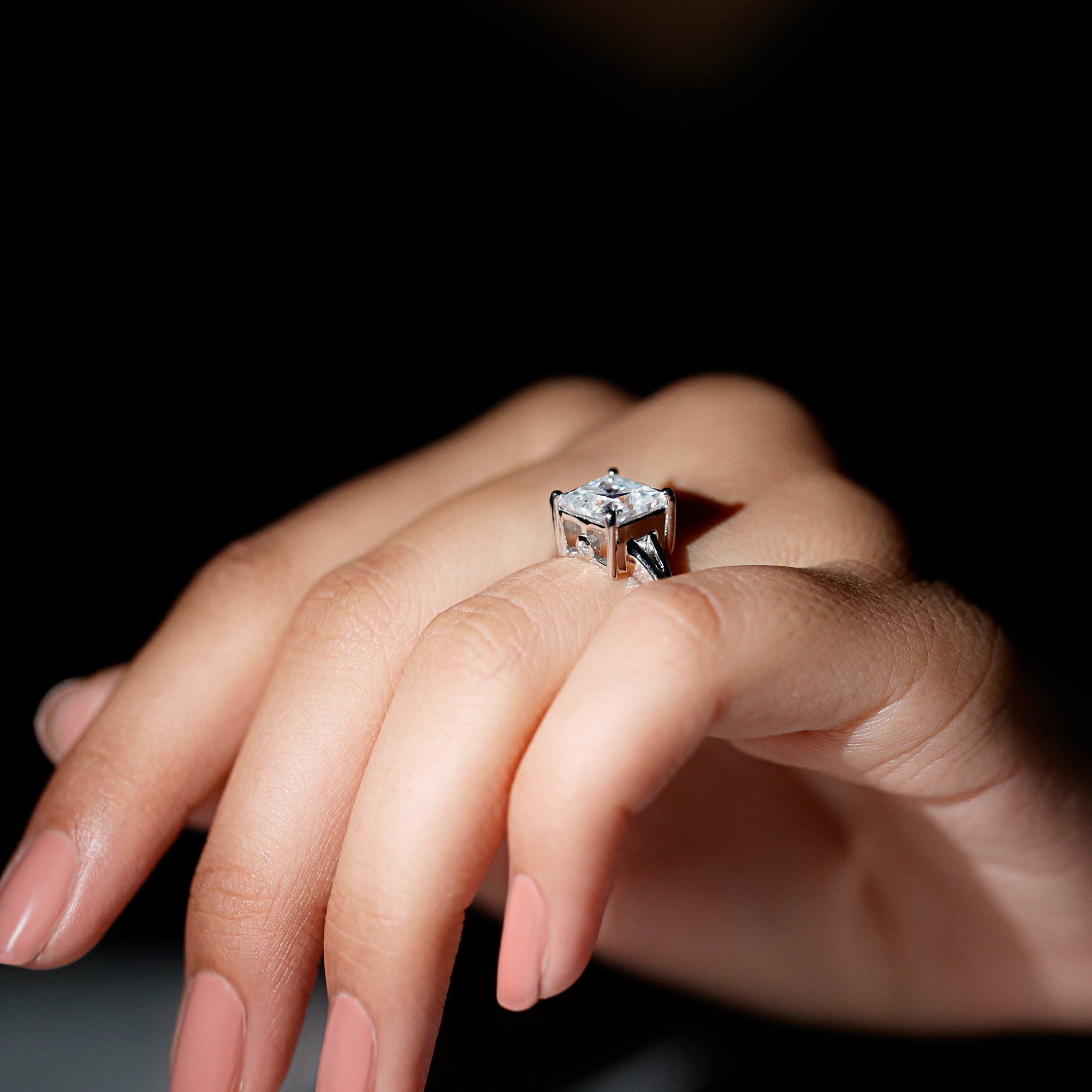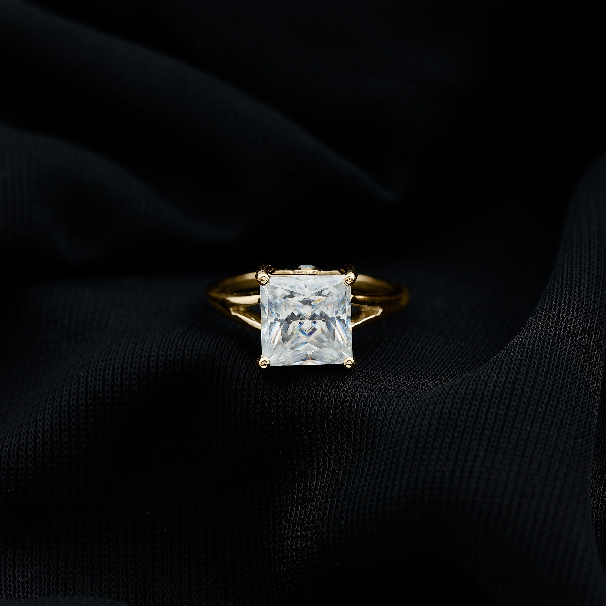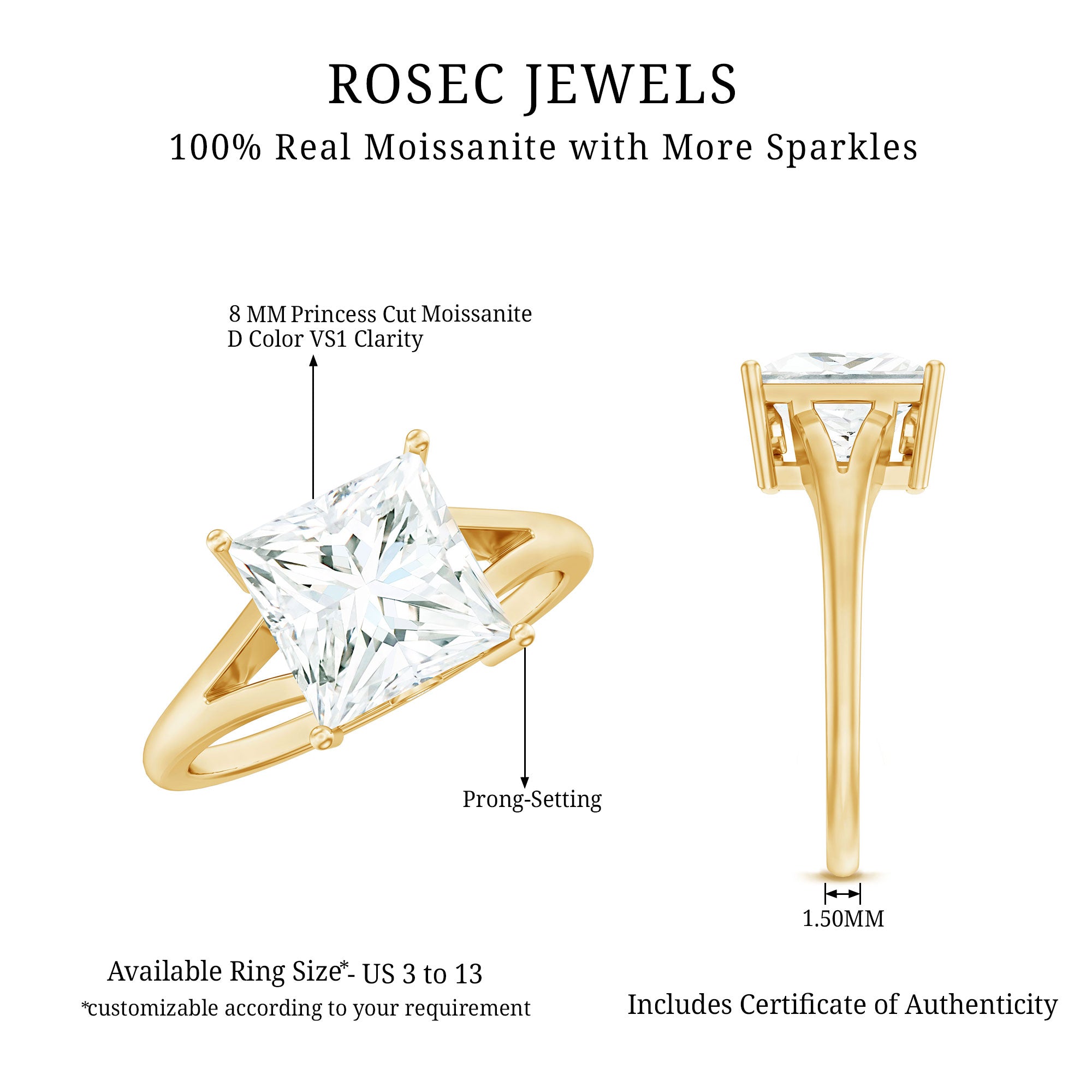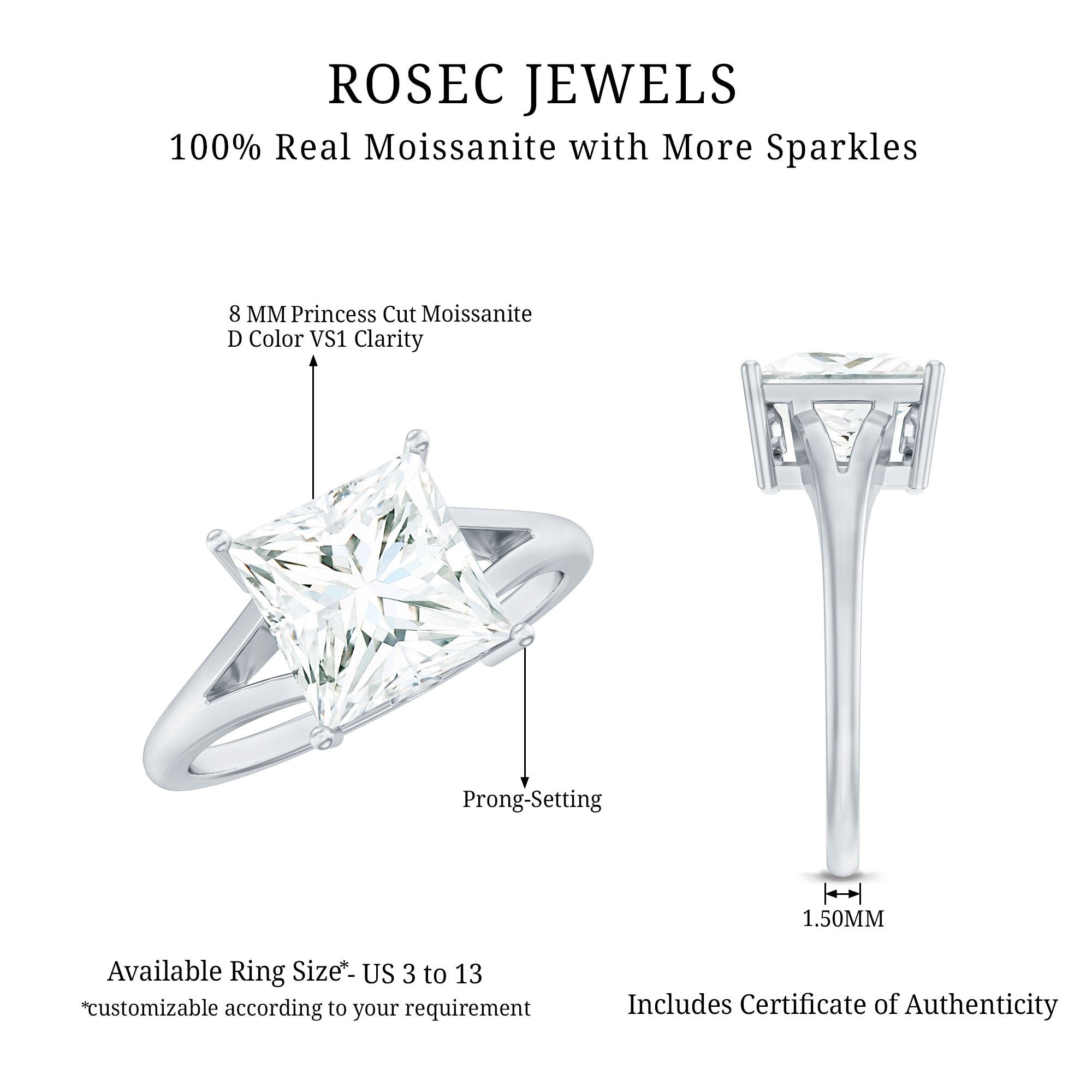 Certified 8 MM Moissanite Princess Cut Engagement Ring with Split Shank