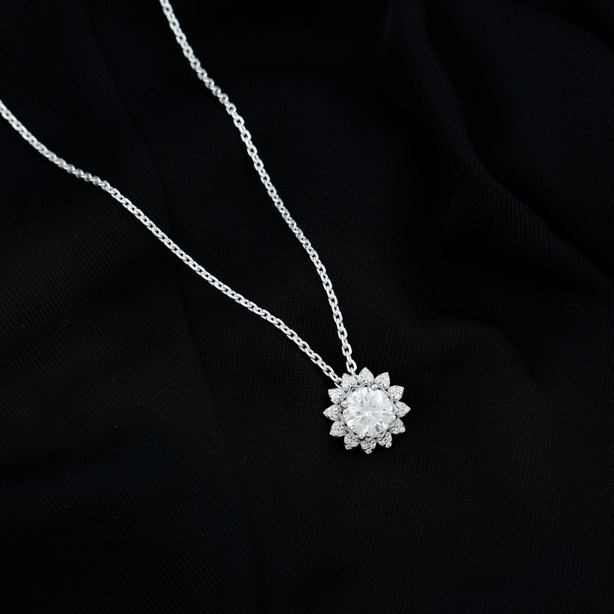 Certified 8 MM Moissanite Sunflower Pendant Necklace with Chain