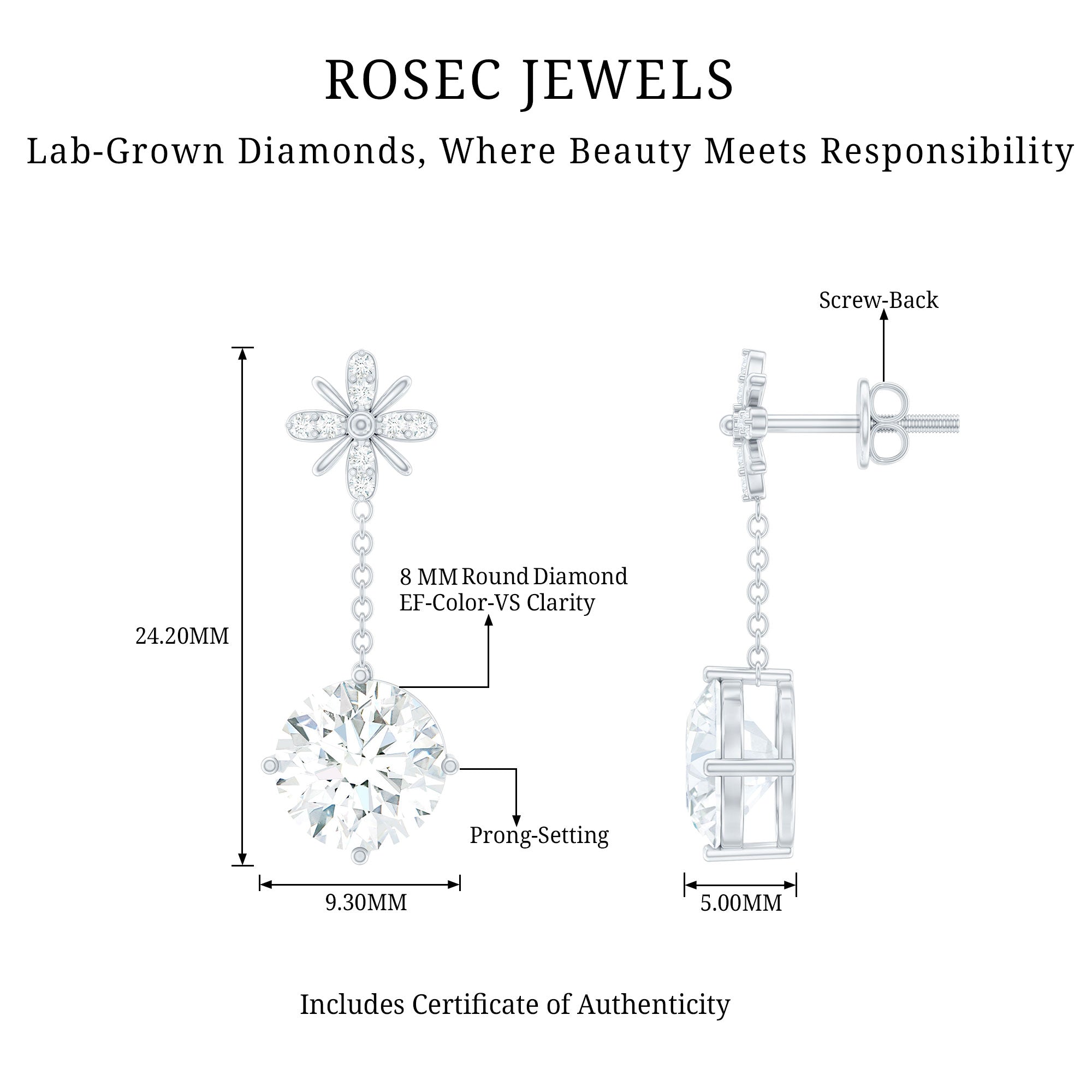 Certified 8 MM Round Lab Grown Diamond Flower Dangle Earrings