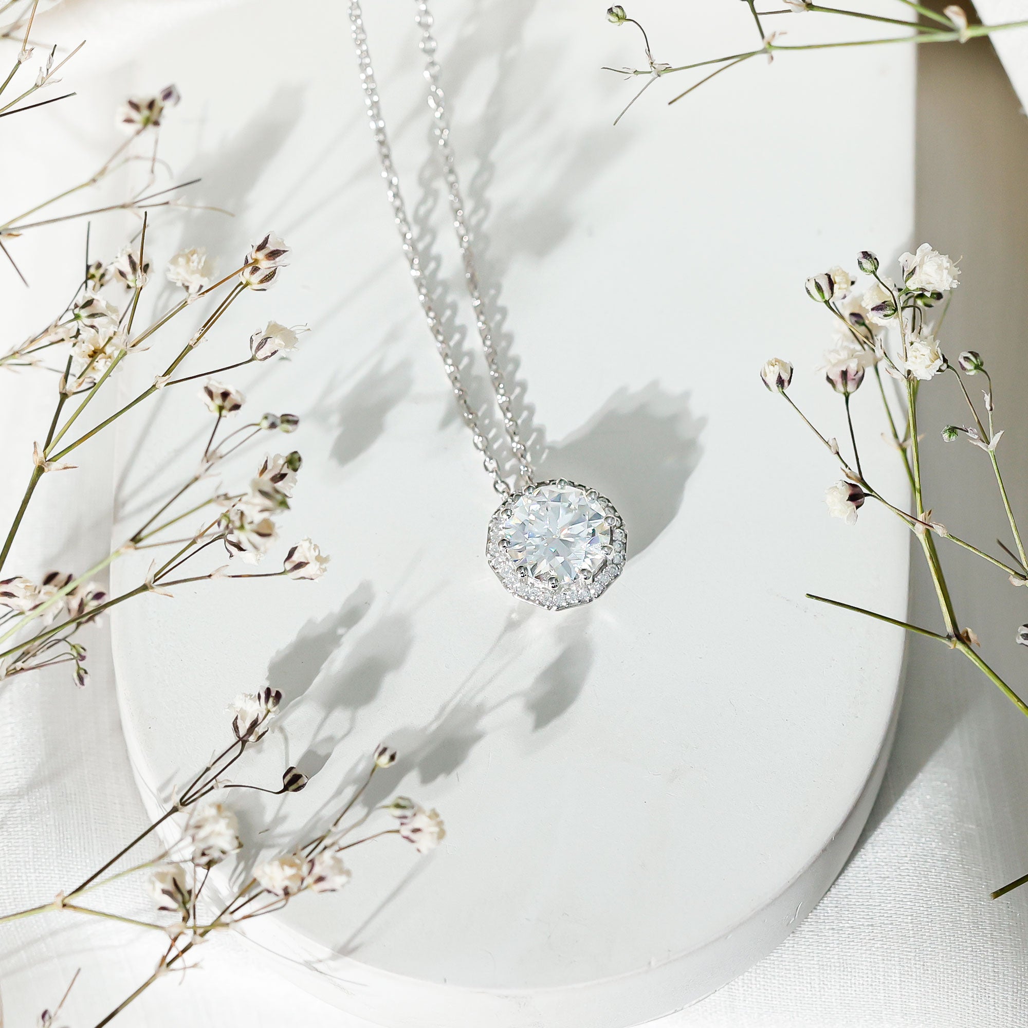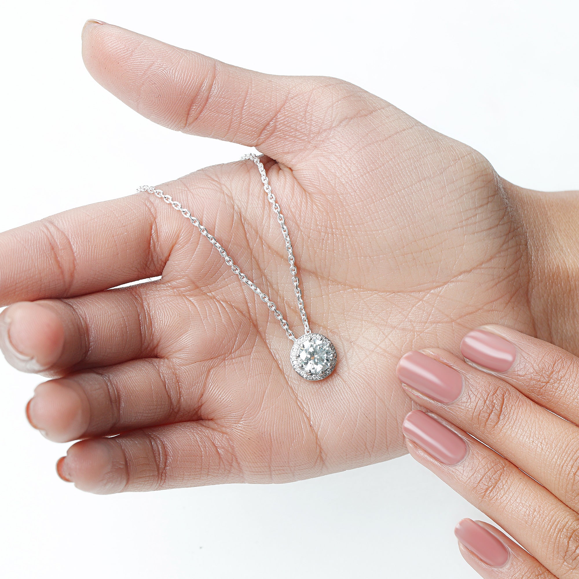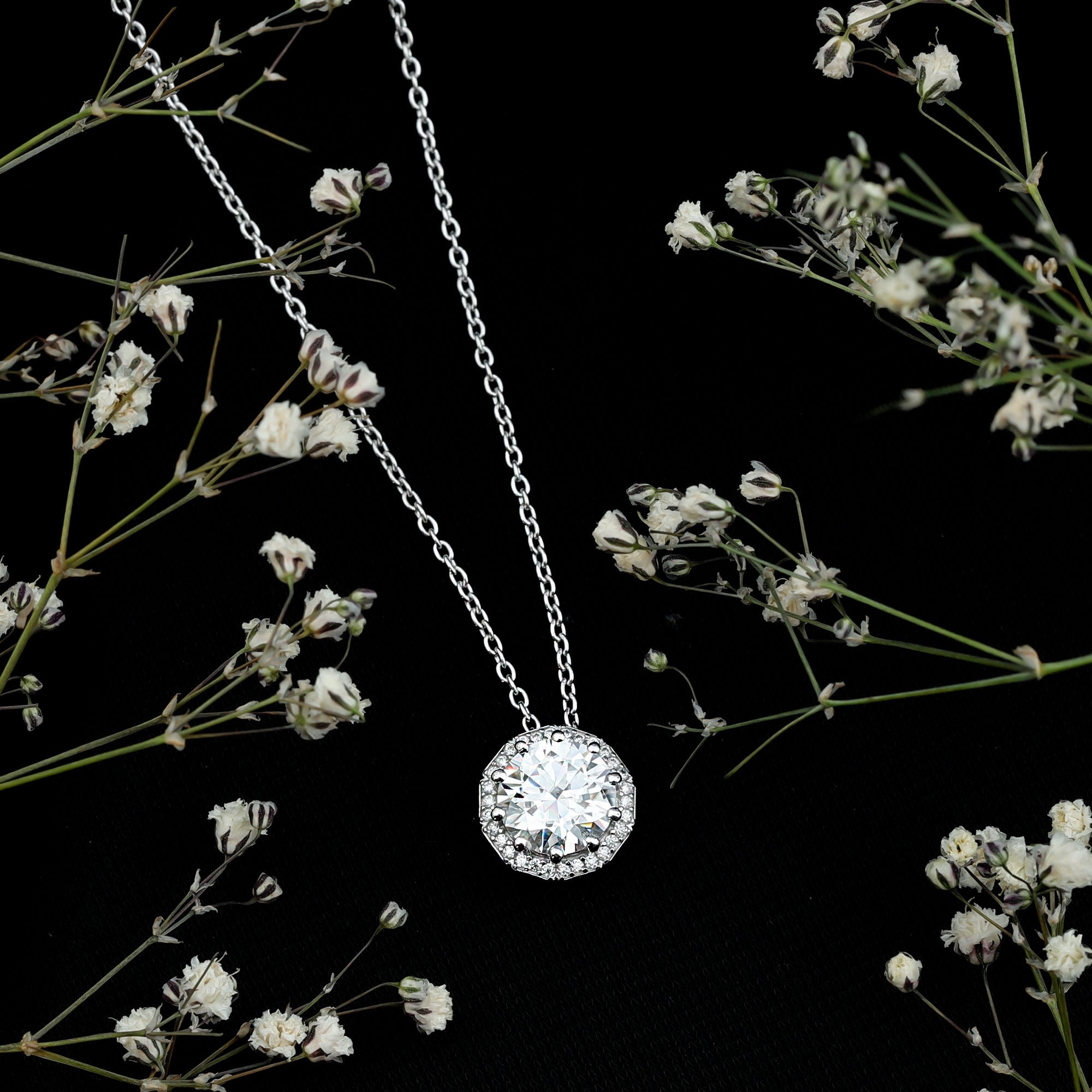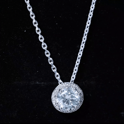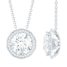 Certified 8 MM Round Moissanite Halo Necklace with Silver Chain