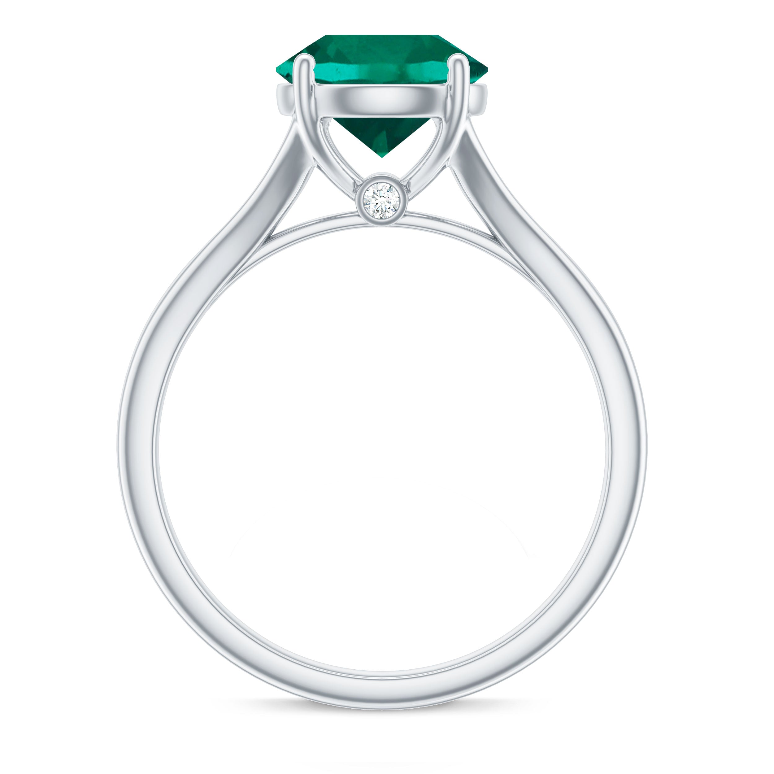 Certified 8mm Lab Grown Emerald Engagement Ring with Diamond