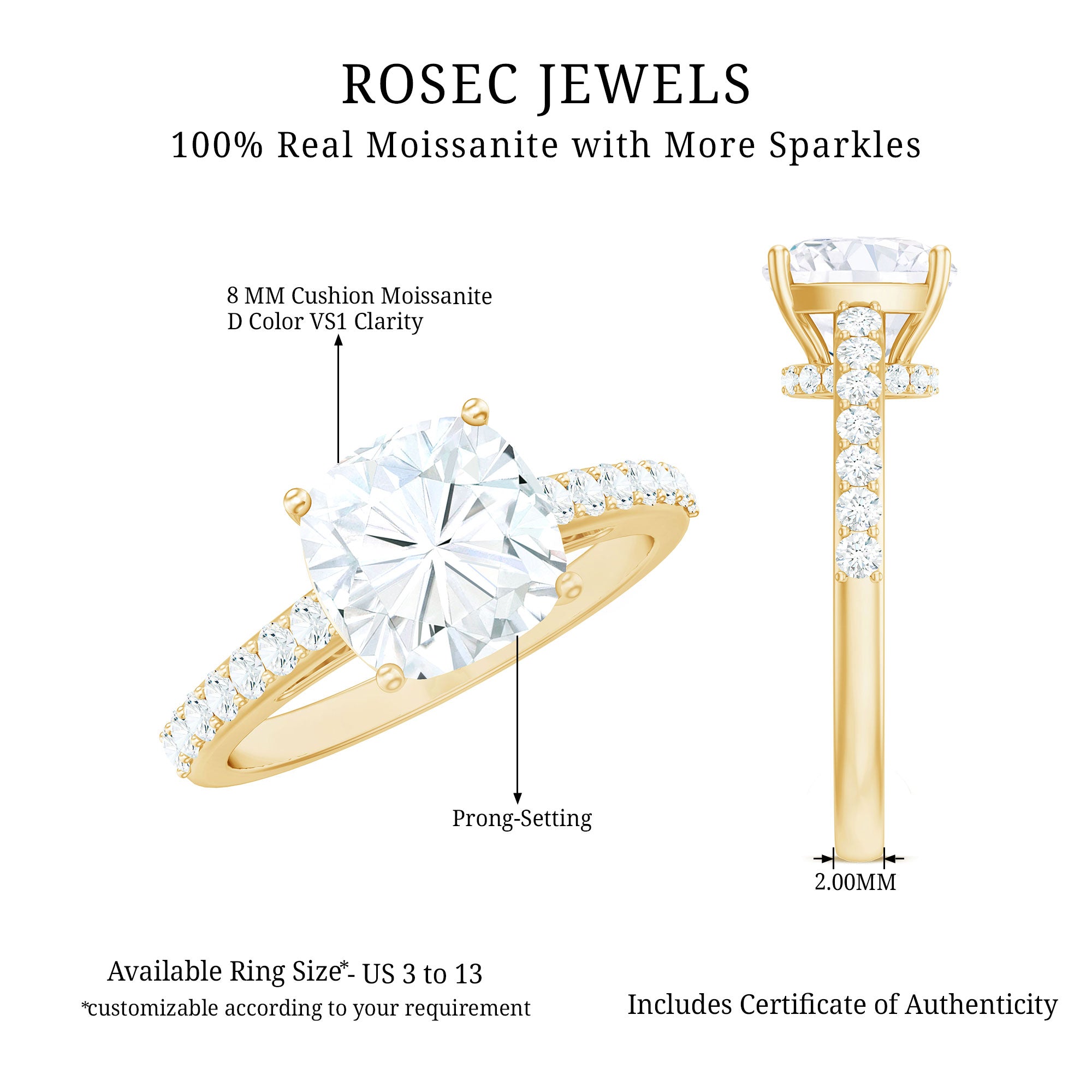 Certified 8mm Moissanite Cushion Cut Engagement Ring