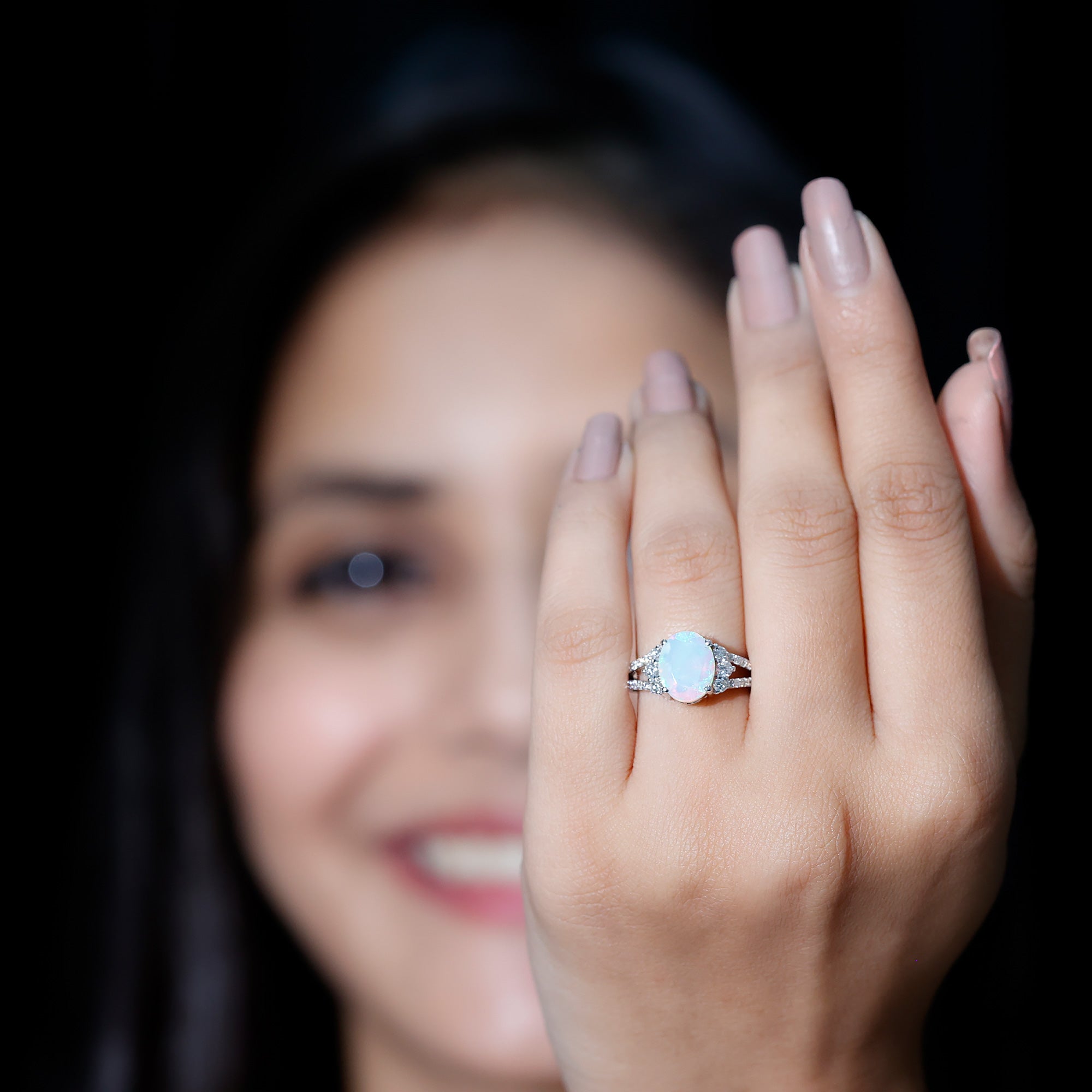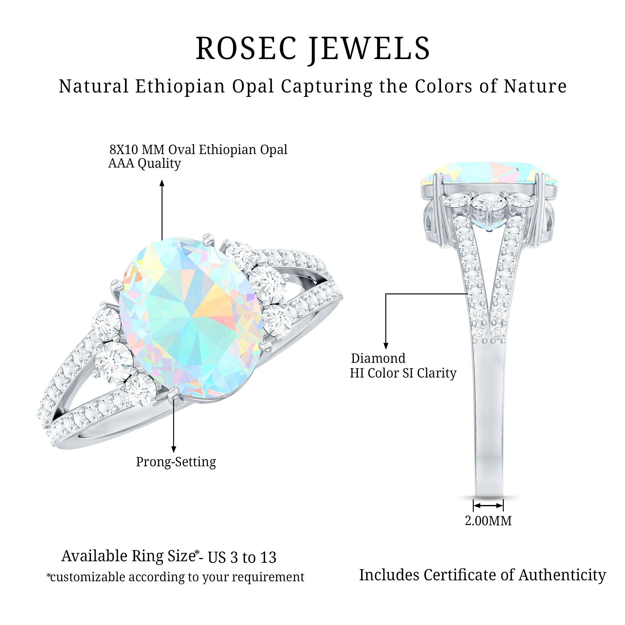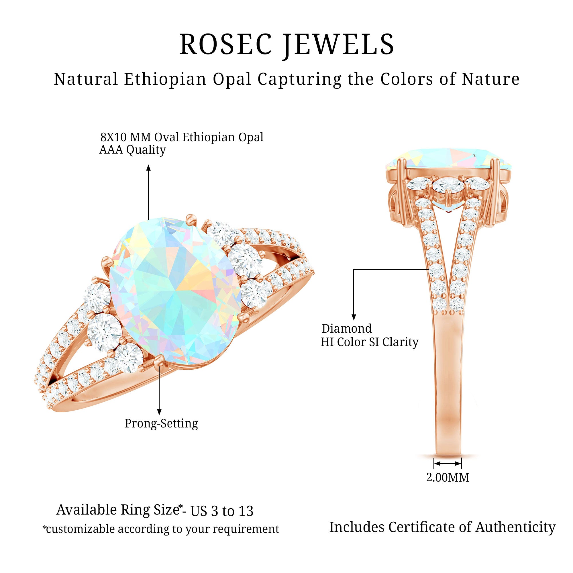 Certified 8X10 mm Ethiopian Opal Oval Engagement Ring with Diamond