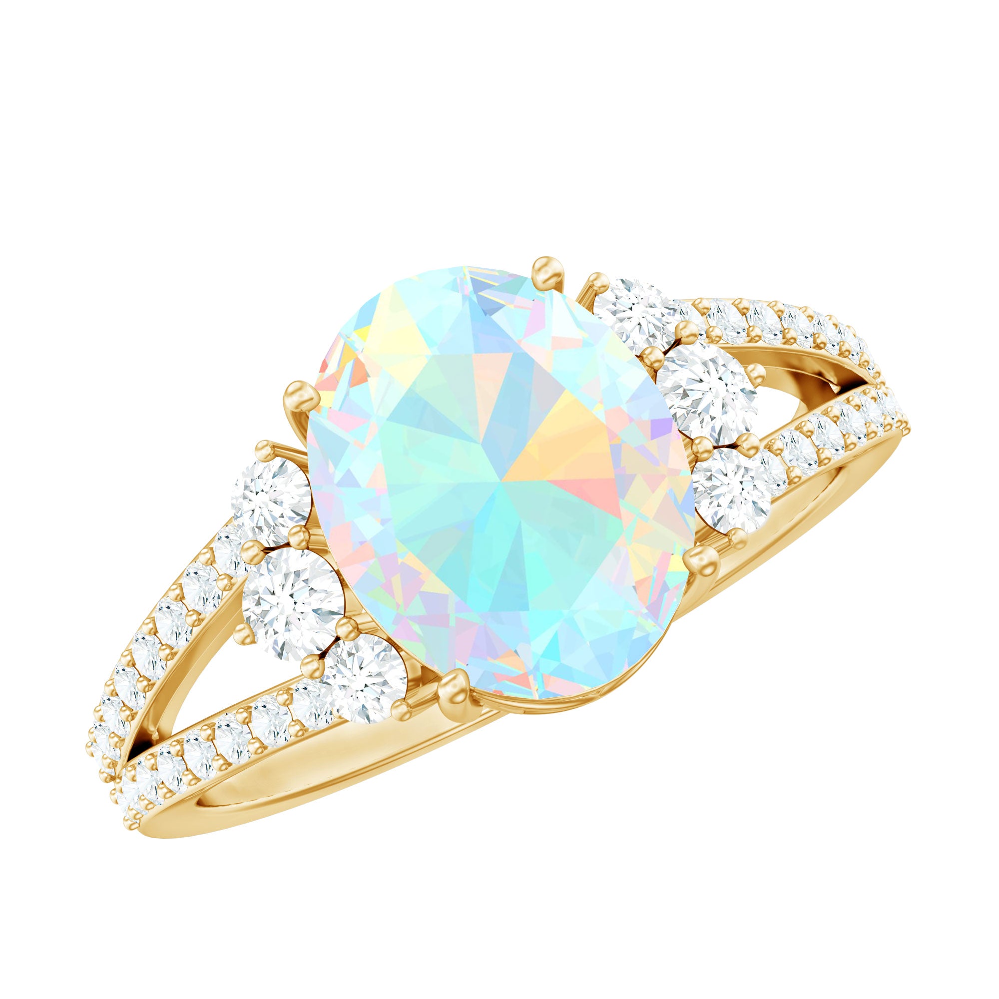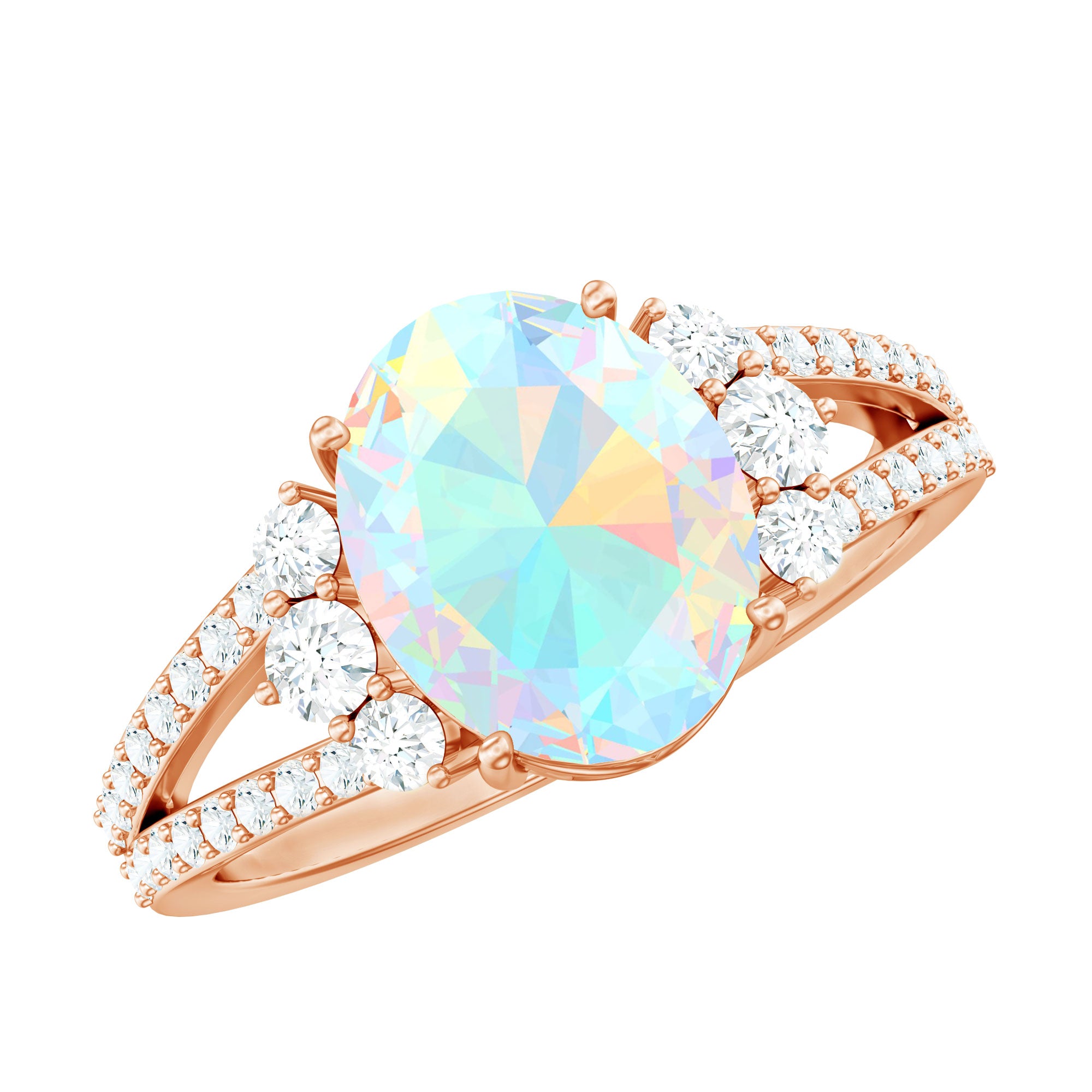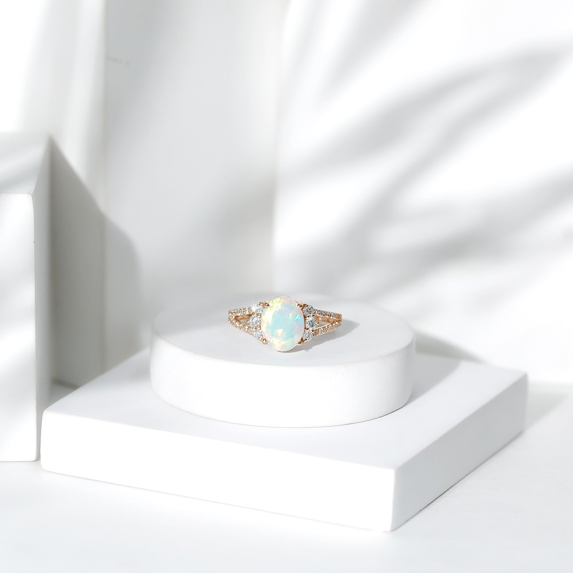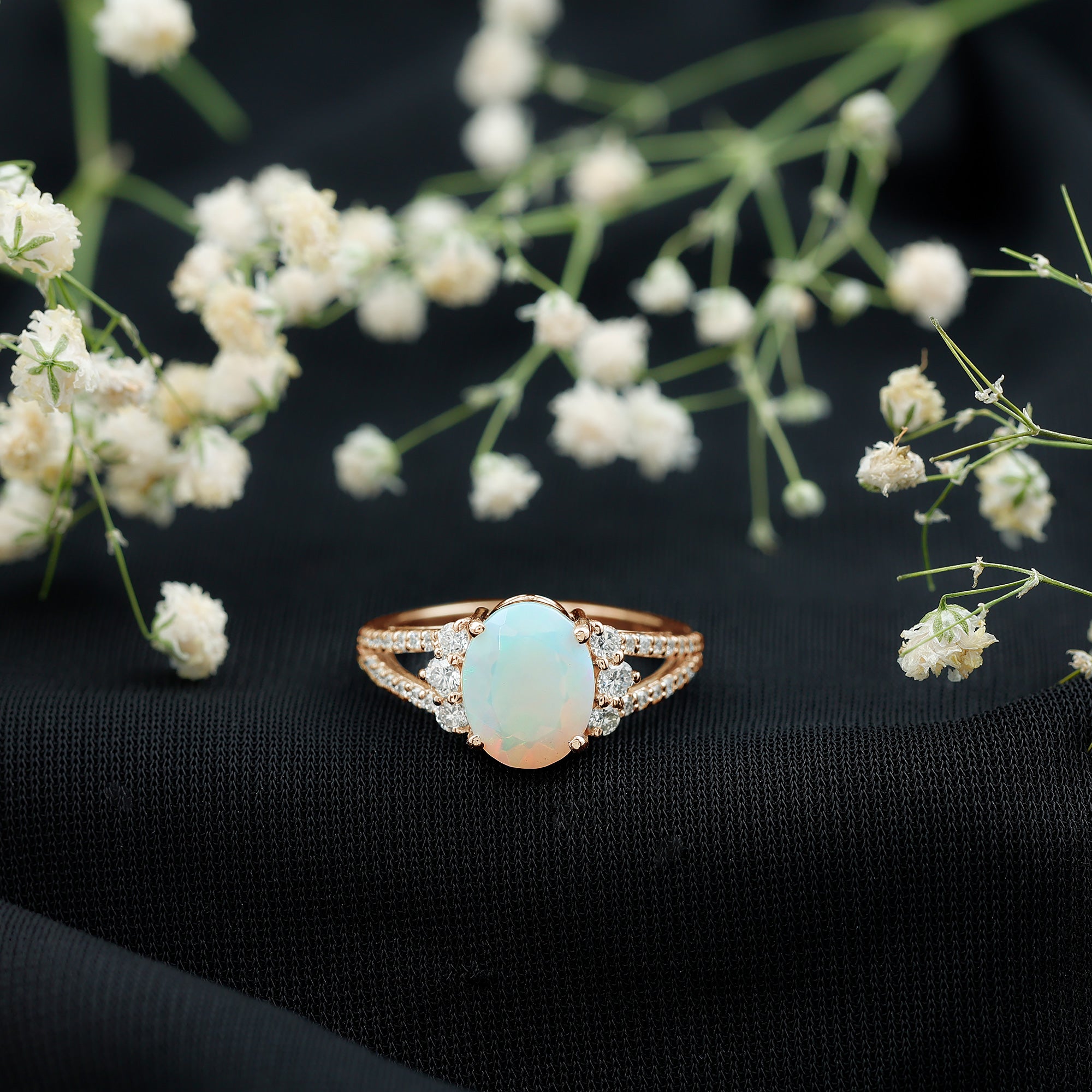 Certified 8X10 mm Ethiopian Opal Oval Engagement Ring with Diamond