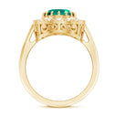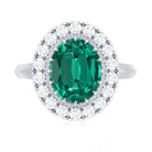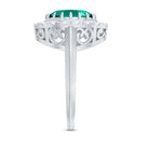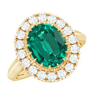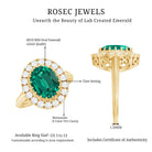 Certified 8X10 mm Oval Lab Grown Emerald Vintage Looking Engagement Ring with Halo