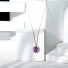 Certified 8X10MM Amethyst Oval Necklace with Moissanite Halo