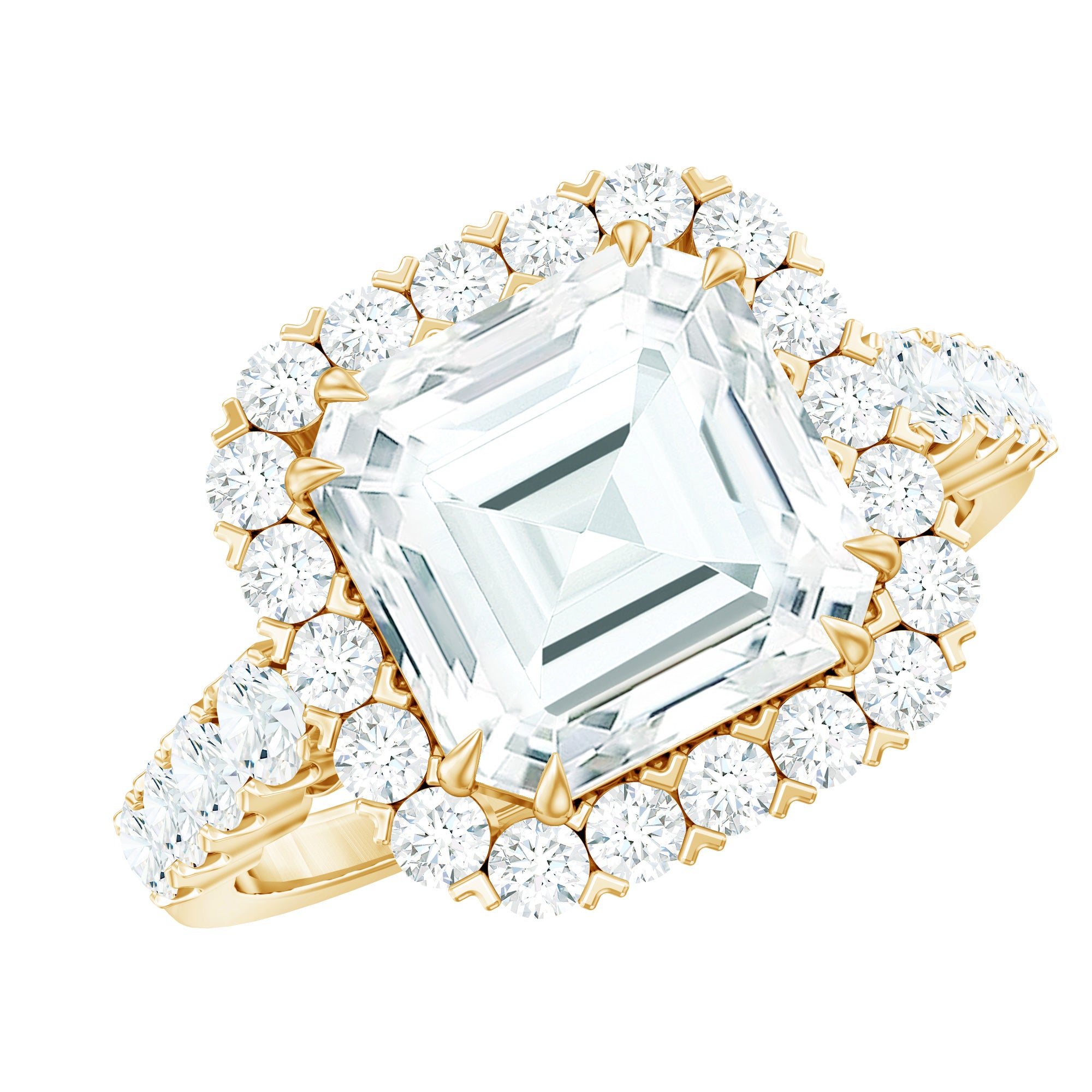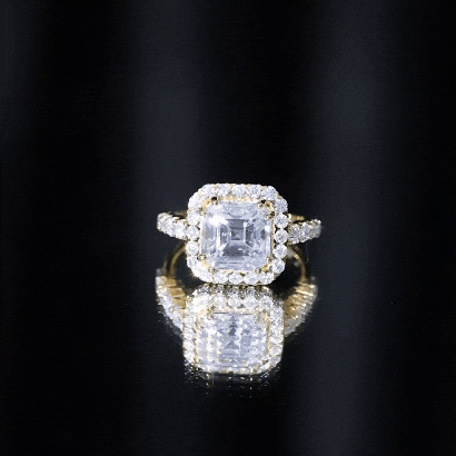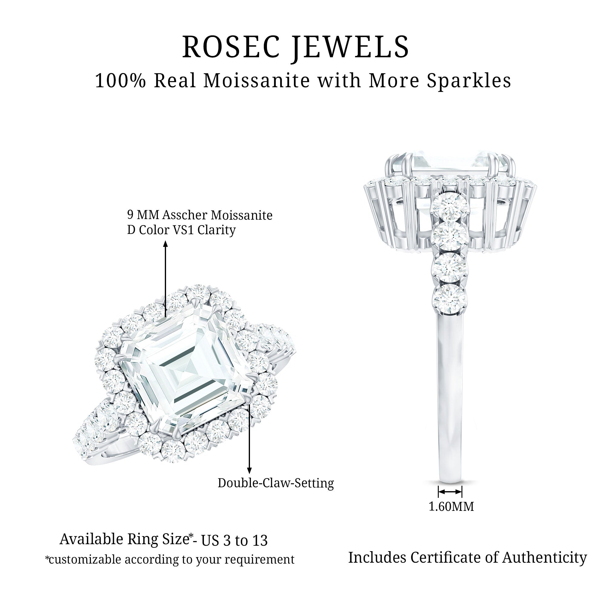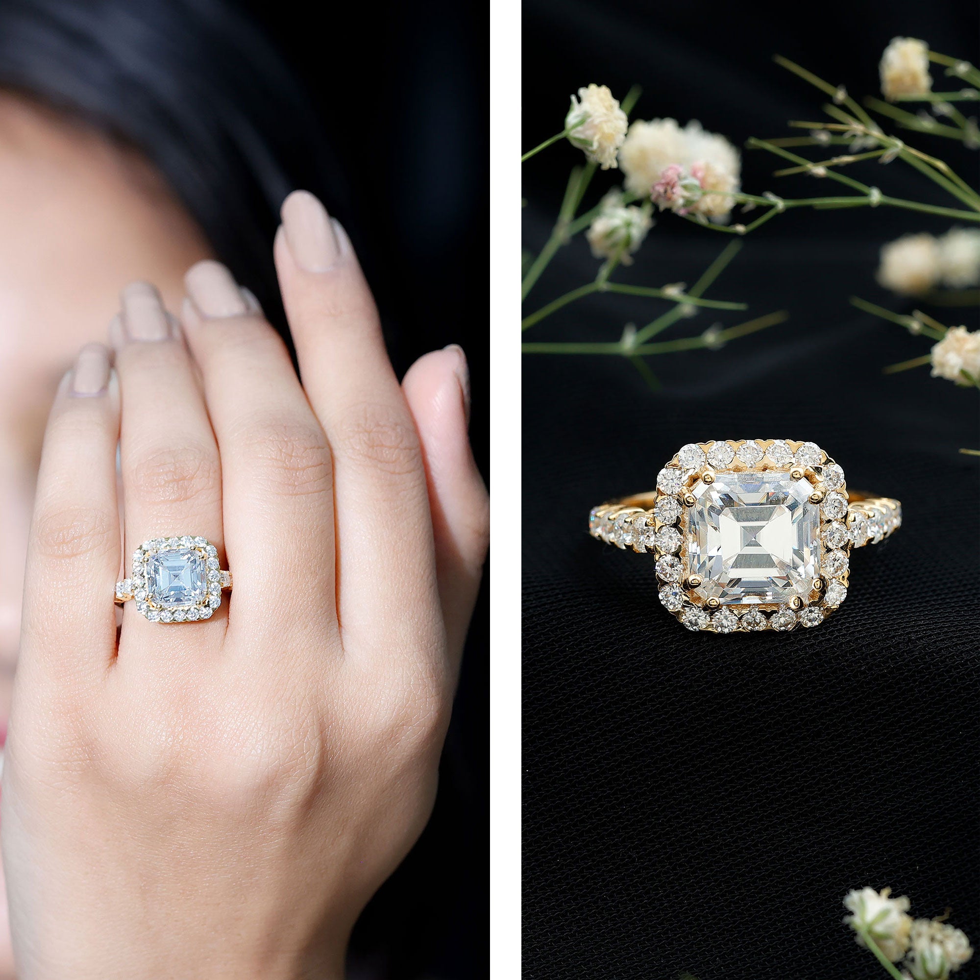 Certified 9 MM Asscher Cut Moissanite Halo Engagement Ring