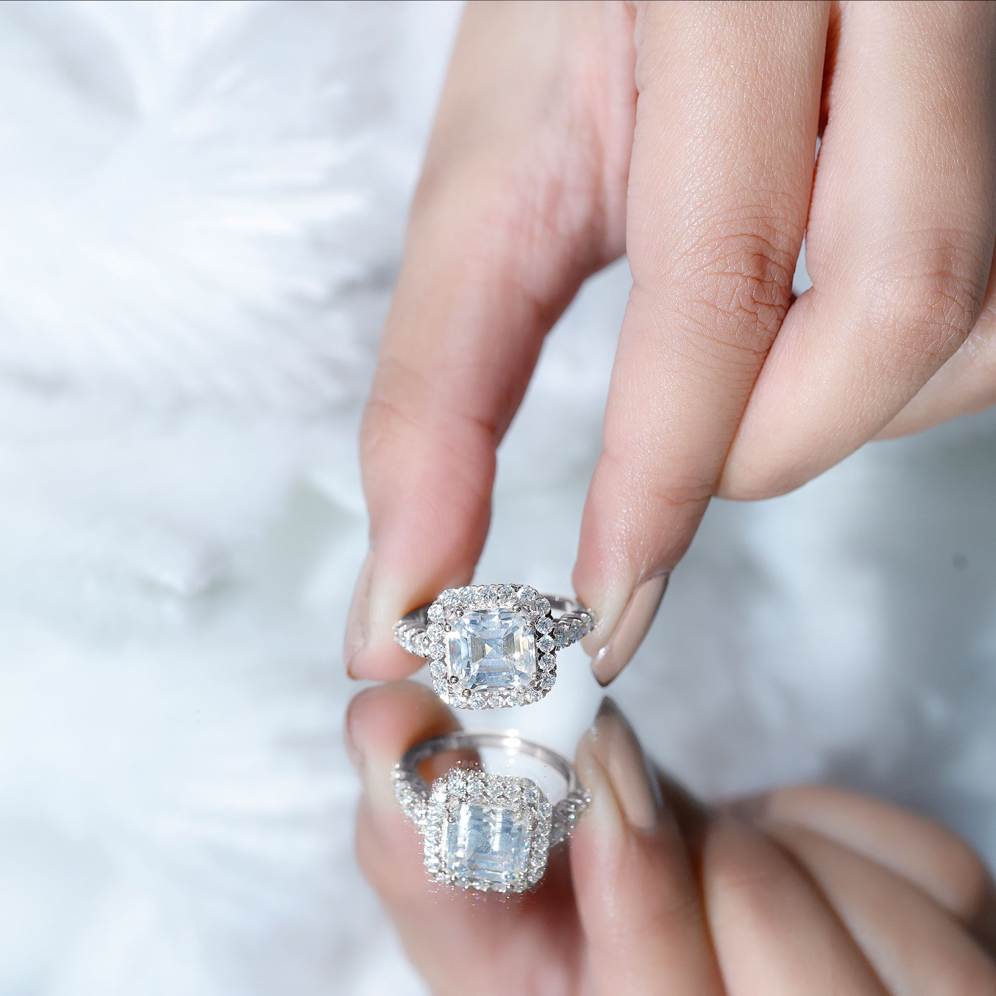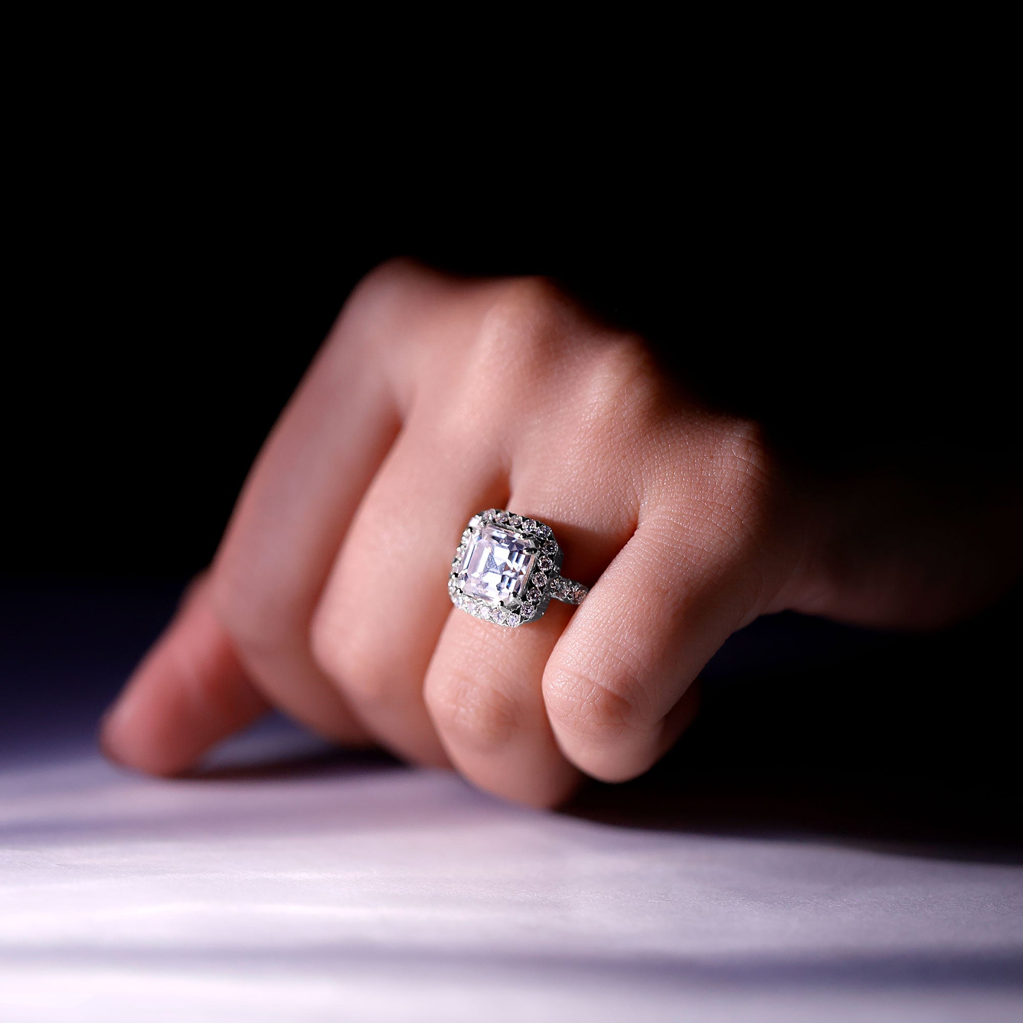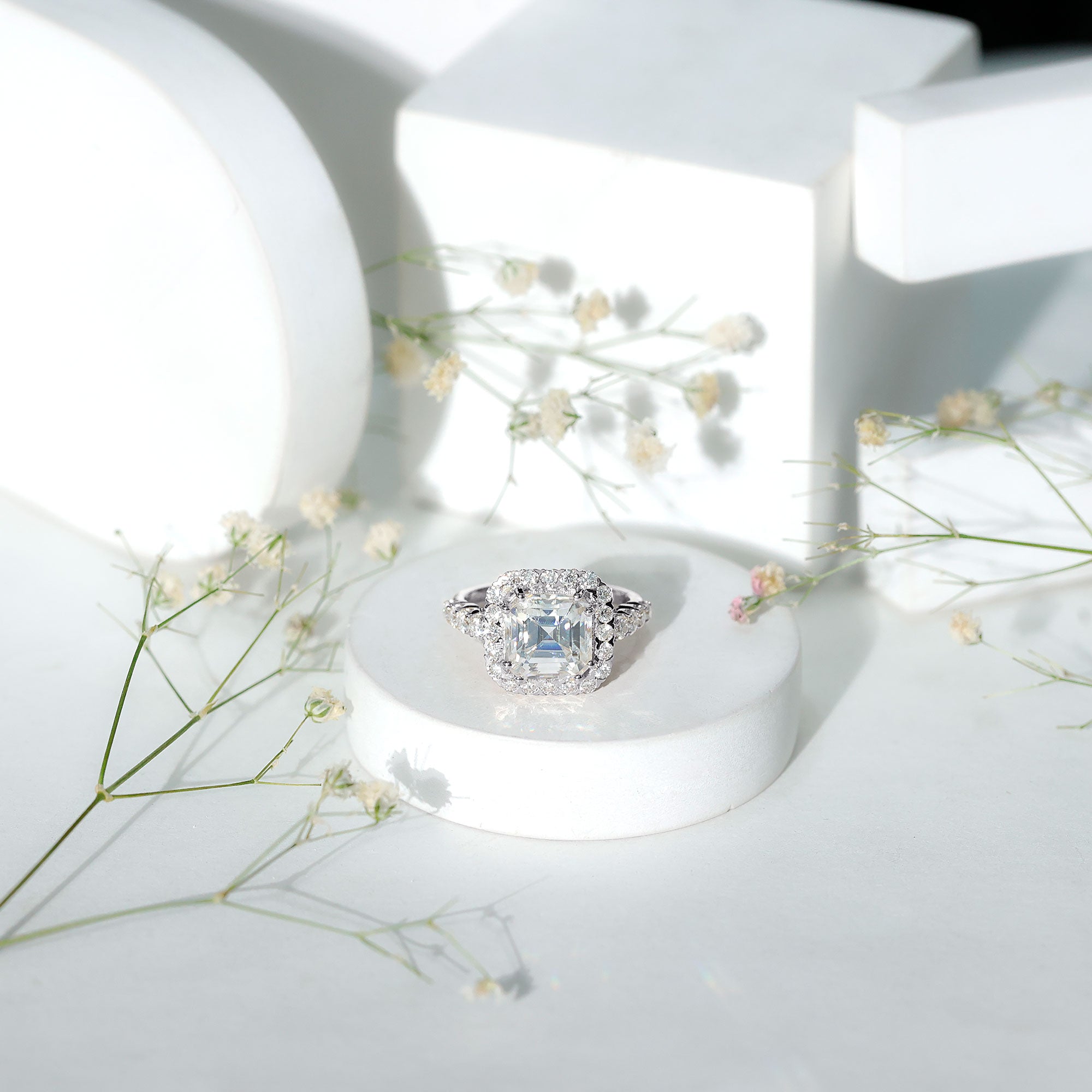Certified 9 MM Asscher Cut Moissanite Halo Engagement Ring