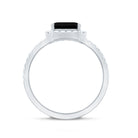 Certified Asscher Cut Black Onyx and Diamond Engagement Ring