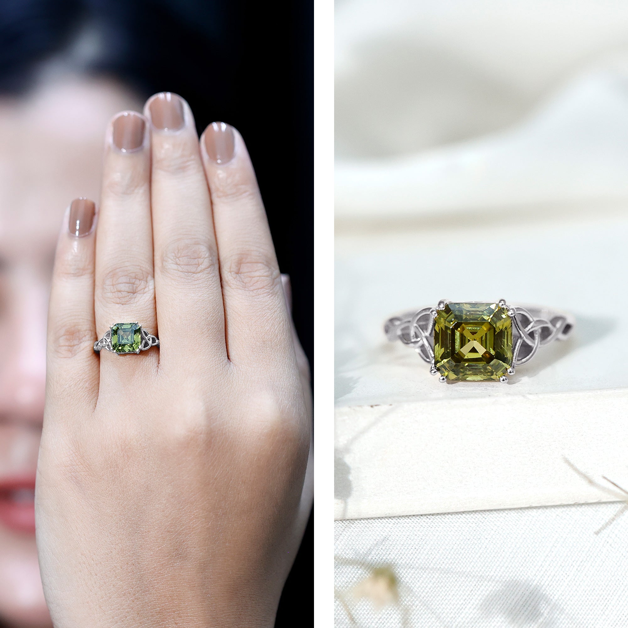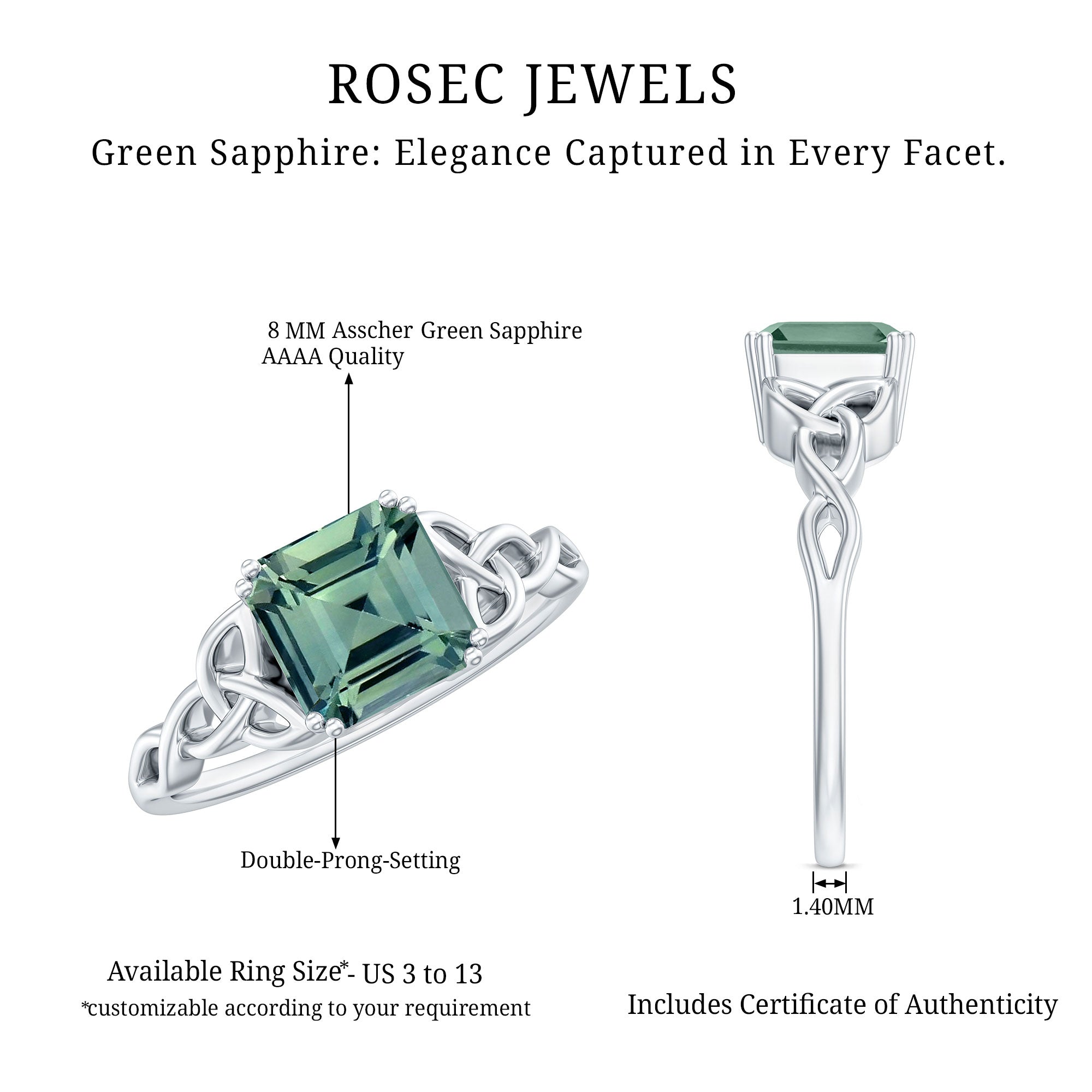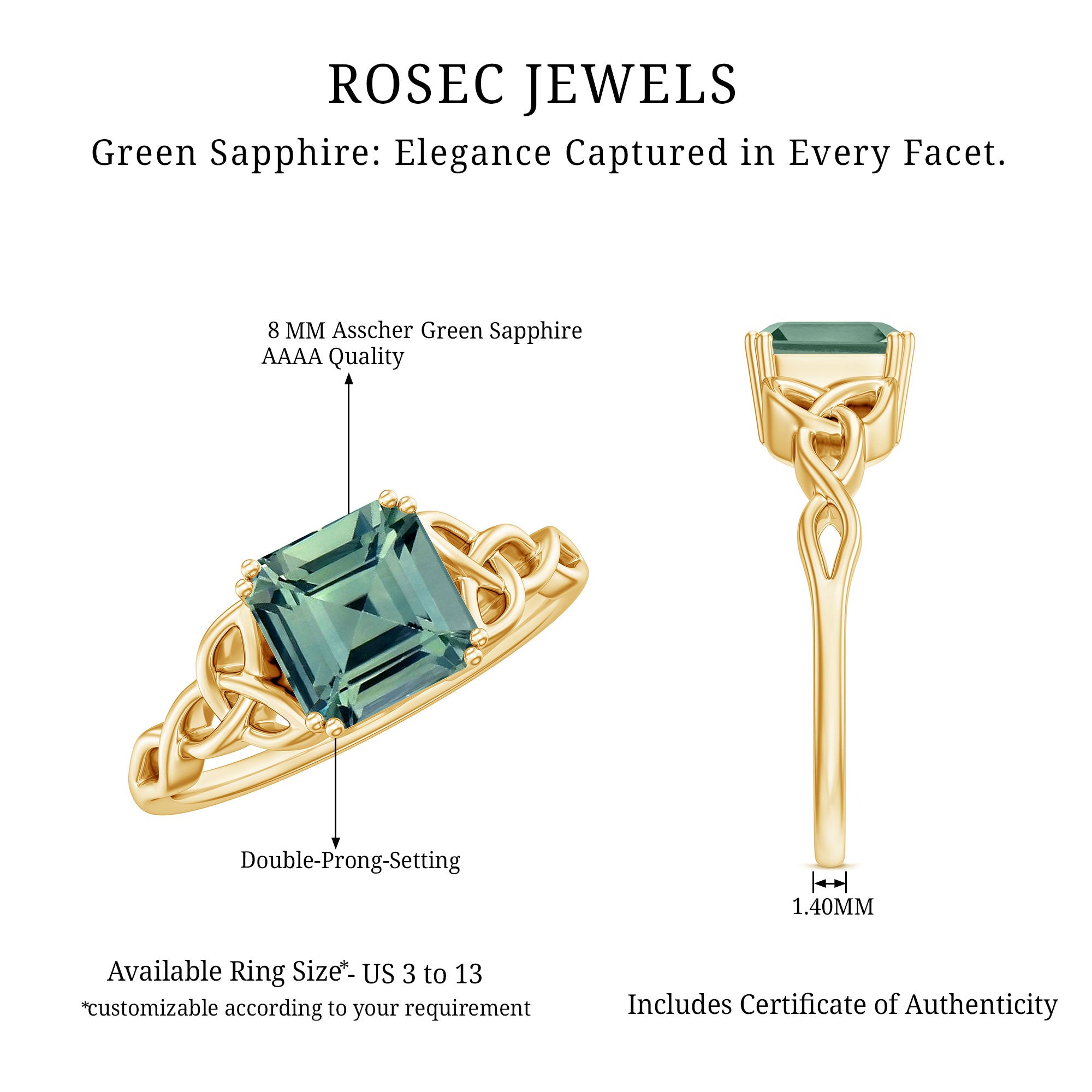 Certified Asscher Cut Lab Grown Green Sapphire Solitaire Celtic Engagement Ring
