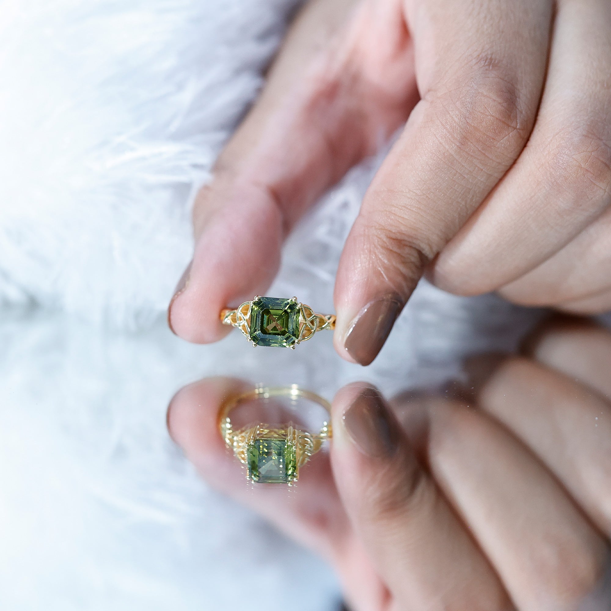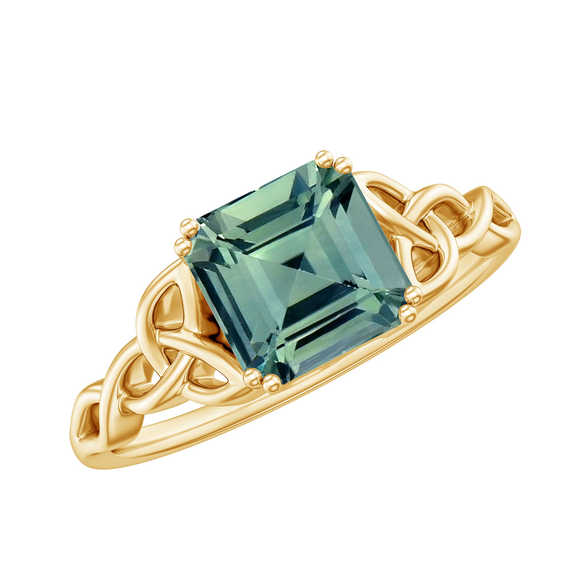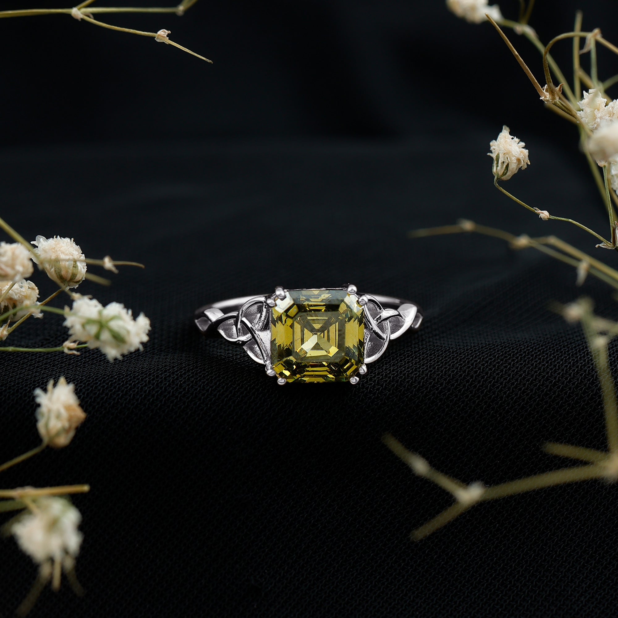 Certified Asscher Cut Lab Grown Green Sapphire Solitaire Celtic Engagement Ring
