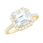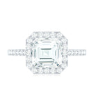 Certified Asscher Cut Moissanite Halo Engagement Ring for Women