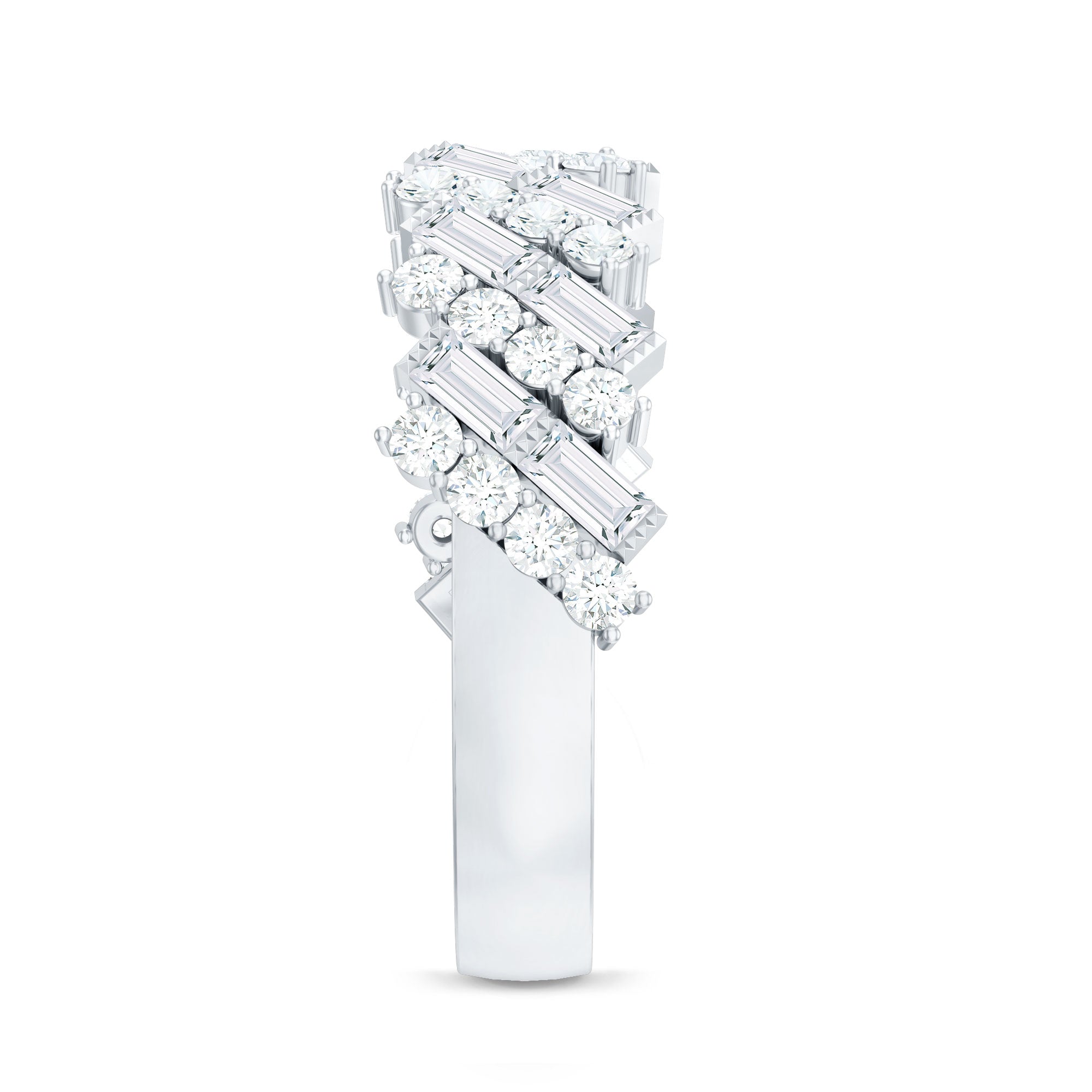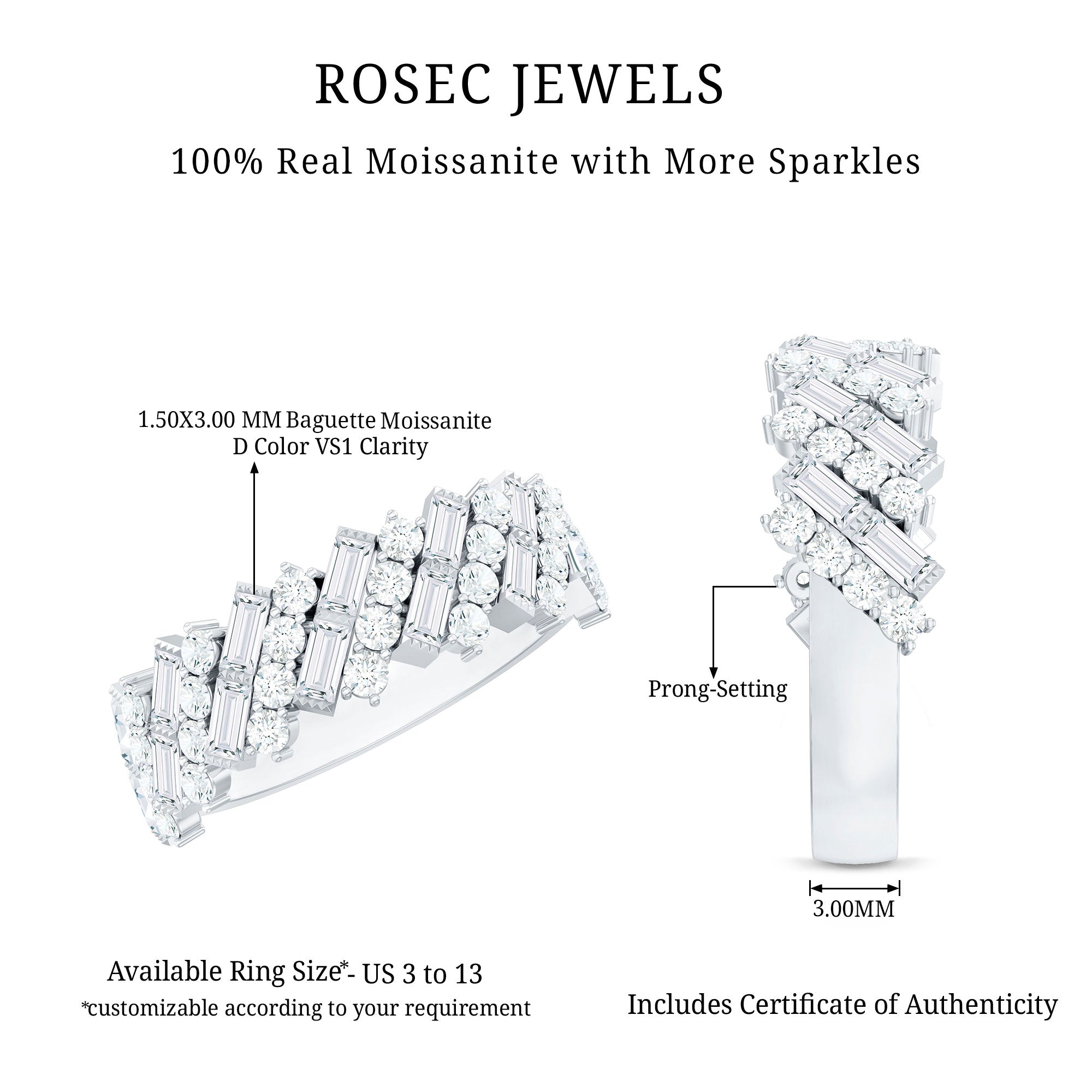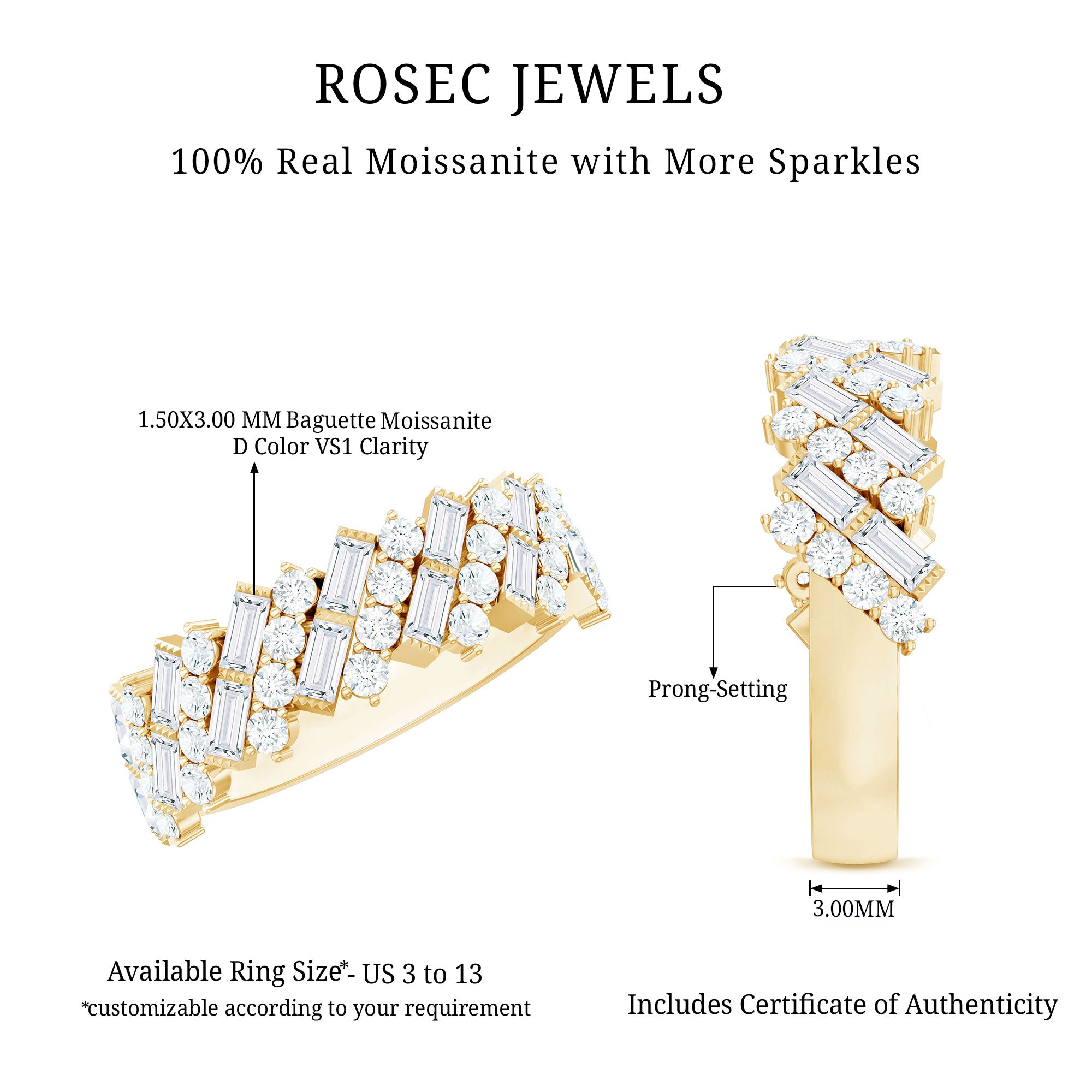 Certified Baguette and Round Moissanite Half Eternity Wedding Band