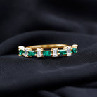 This Half Eternity Ring is a beautiful blend of modern style and meaningful symbolism. The ring features Baguette Shape AAAA Quality Lab Created Emerald and HI-SI Diamond stones set in an eye-catching alternate pattern along half of the band. What makes this design unique is the way the stones are placed, the Lab Emerald stones are placed horizontally, while the Diamonds are set vertically, creating a stunning geometric contrast that enhances the sparkle and color of each stone. The green Lab Emerald symbolizes growth, harmony, and renewal, while the Diamond represents strength and everlasting love. The half eternity design allows a comfortable fit and daily wear while still giving the appearance of endless brilliance. This thoughtful design makes this Baguette Emerald Ring ideal for marking significant milestones like anniversaries, special occasions or simply as a meaningful gift to express your love. Available in various sizes and presented in an elegant jewelry box, this Lab Grown Emerald Diamond Ring stands as a timeless expression of your commitment, a piece she will cherish forever.