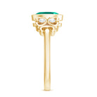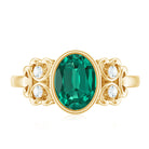 Step into a world of timeless elegance with this Antique Looking Engagement Ring, featuring a radiant 6X8 mm Oval Shape Lab Created Emerald of AAAA Quality in Bezel Setting at the center, glowing in rich green tones that symbolize love, luck and new beginnings. The center stone is beautifully framed by an antique style design, featuring intricate details that give the ring a vintage feel. On each side, sparkling HI-SI Diamond stones are delicately set into the ornate patterns, adding just the right amount of sparkle and charm. This design captures the romance of a bygone era while staying true to modern values. The combination of bold Lab Emerald and detailed craftsmanship creates a look that is both unique and unforgettable. Whether you are drawn to its classic beauty or its symbolic meaning, this Bezel Set Engagement Ring with Emerald is made for someone who appreciates history, style and sustainability. Perfect for an engagement, anniversary or a special gift, this Oval Engagement Ring brings a touch of old-world magic to your modern love story. A true celebration of love that lasts through the ages.
