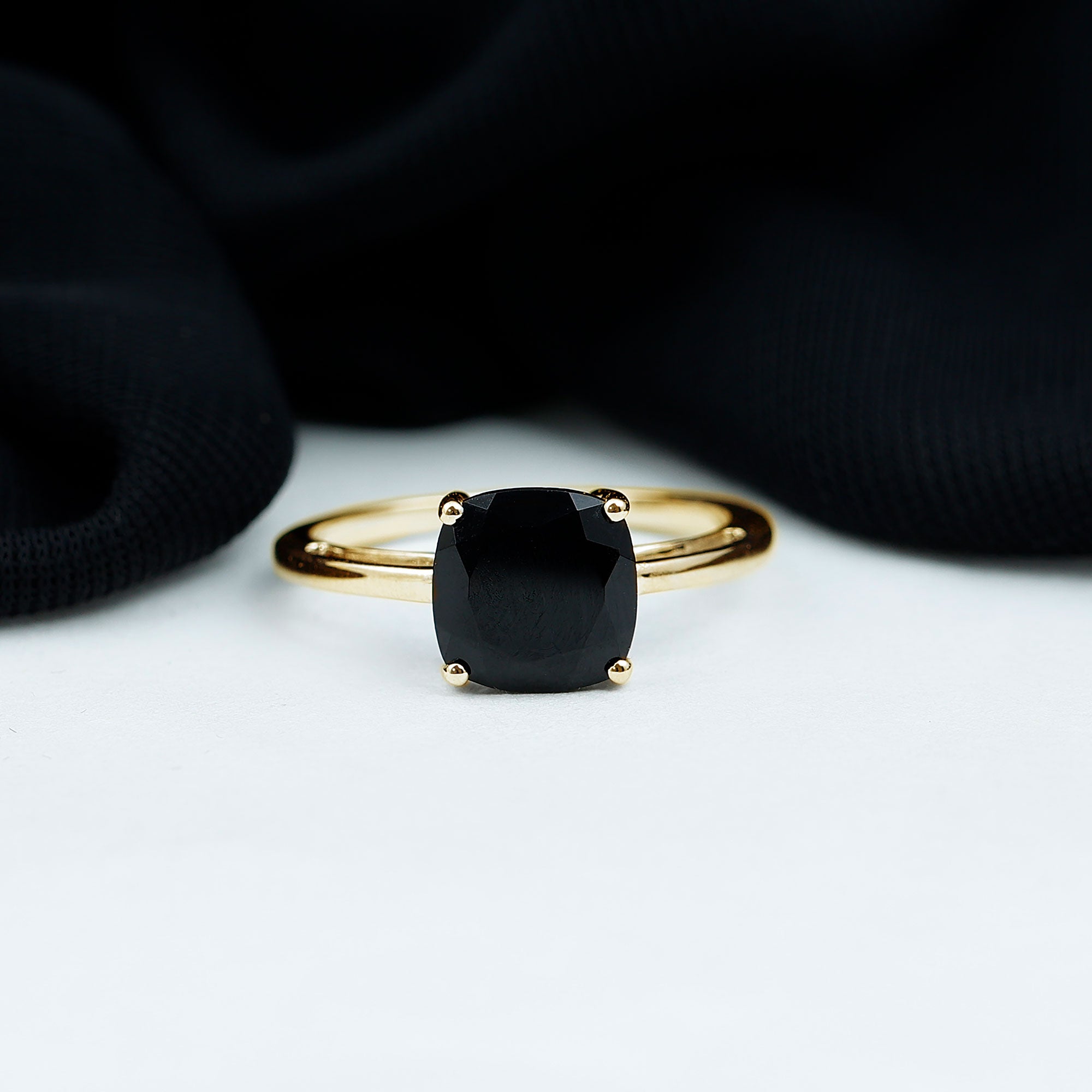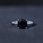 Certified Black Onyx 8MM Cushion Cut Engagement Ring