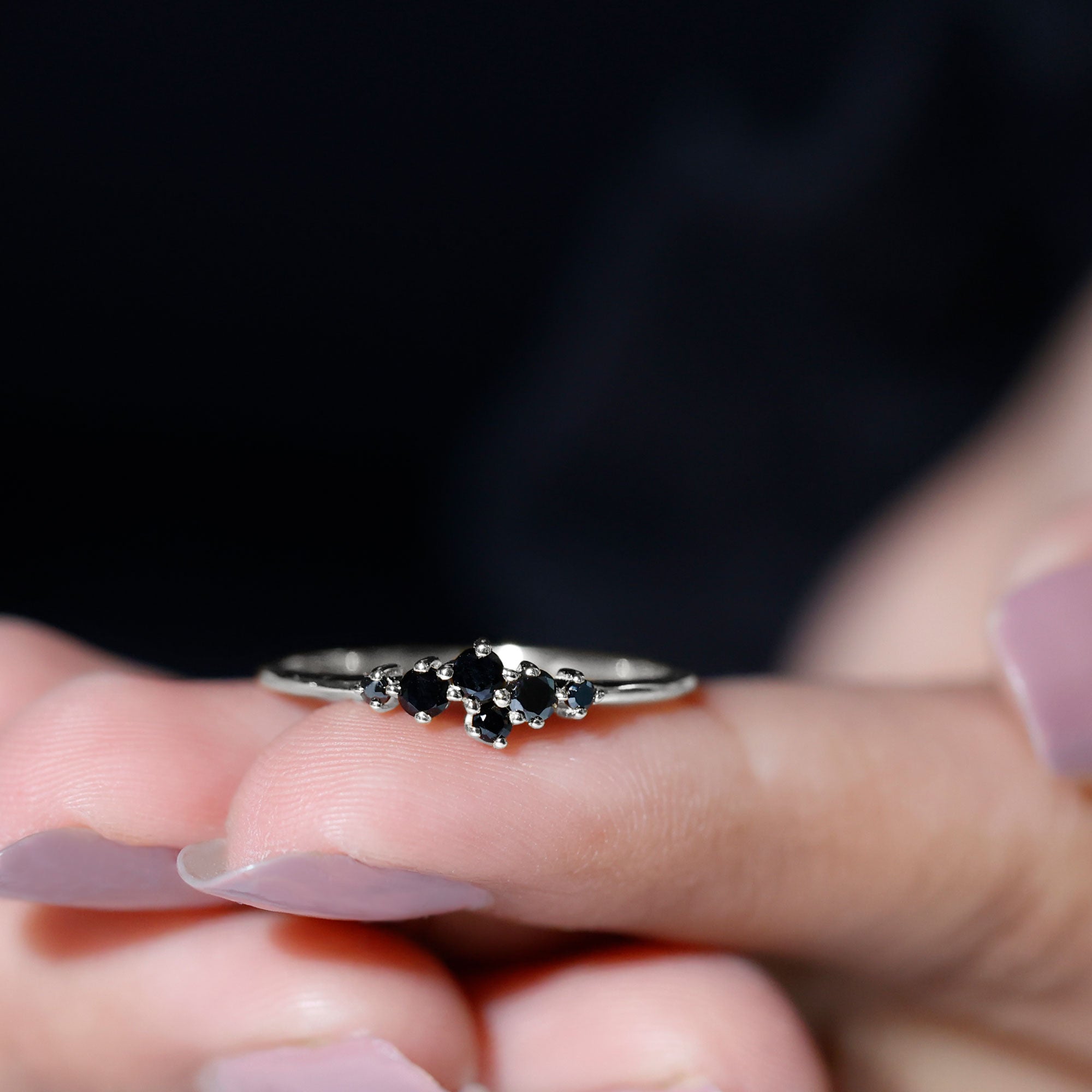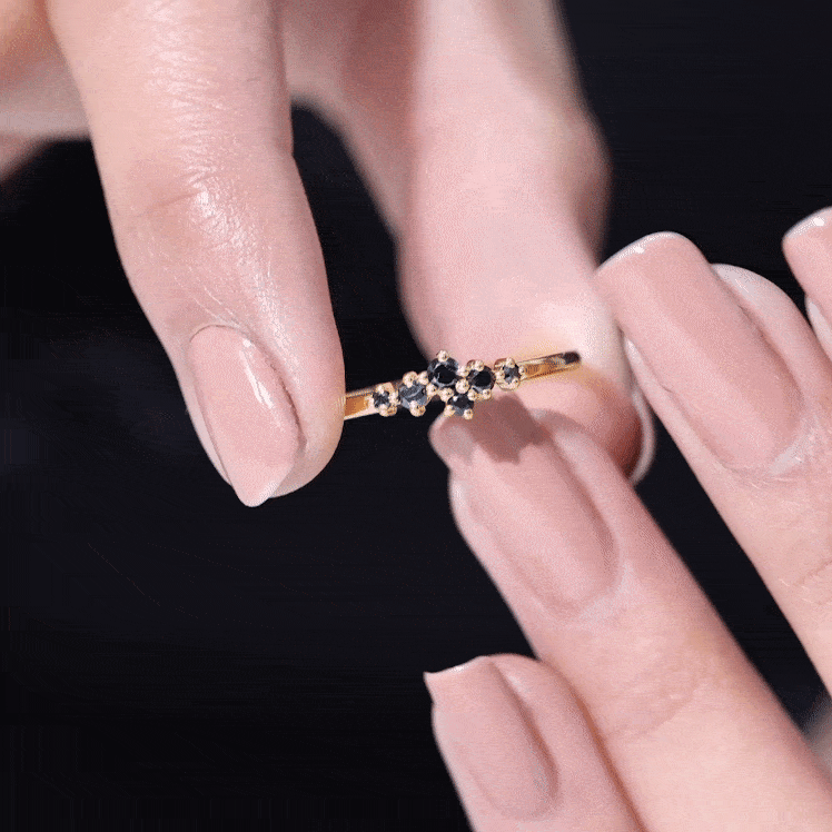 Certified Black Onyx Cluster Promise Ring for Her