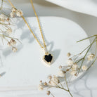 Certified Black Onyx Heart Necklace with Lab Diamond Halo