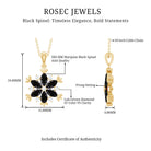 Certified Black Spinel and Diamond Flower Necklace with Silver Chain