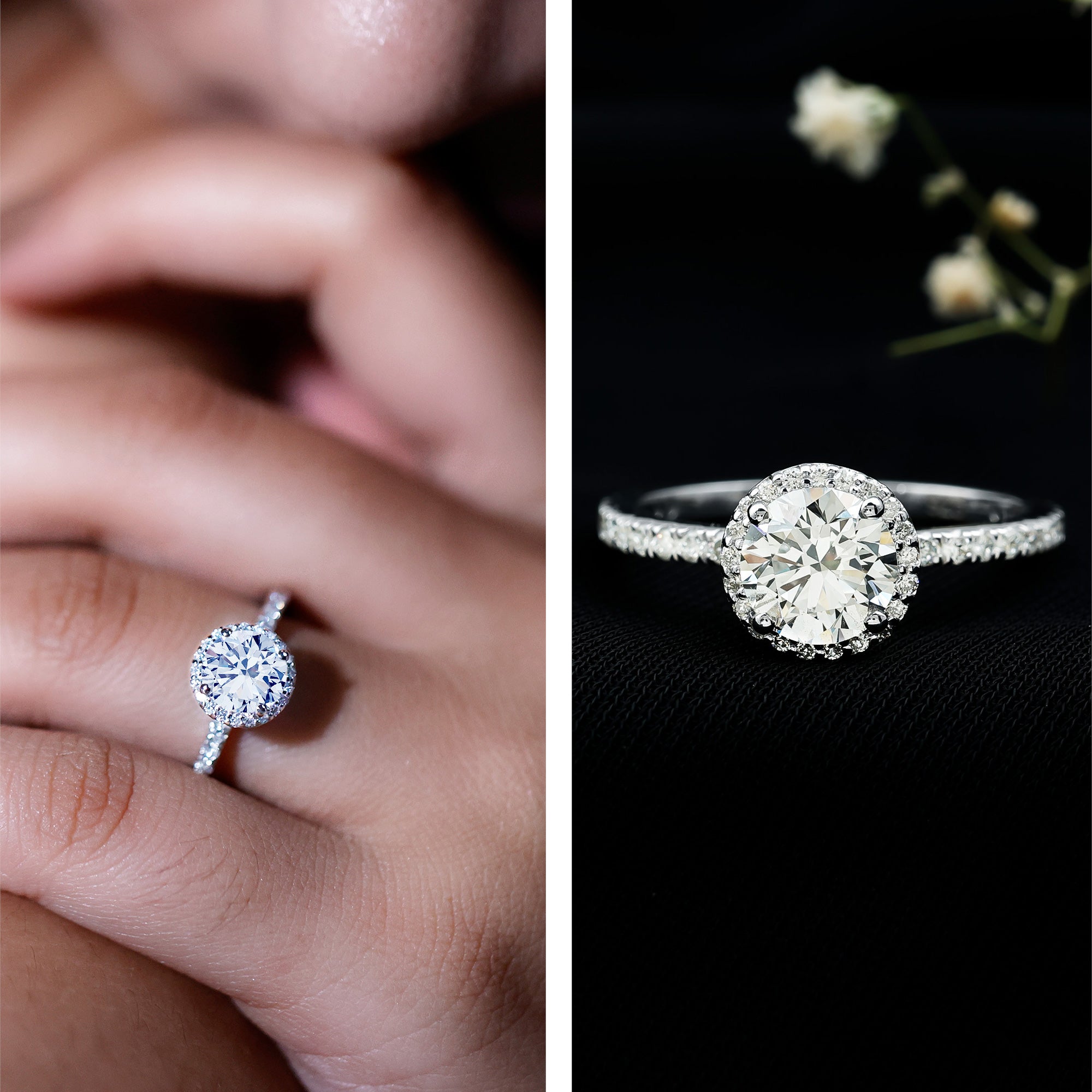 Make your forever moment unforgettable with this Lab Grown Diamond Engagement Ring, featuring a dazzling 7 MM Round Shape Lab Grown Diamond center stone set in Prong Setting. Crafted with EF-VS Quality Lab Grown Diamond stones, this Side Stone Engagement Ring combines timeless design with ethically sourced sparkle. The centerpiece is surrounded by a shimmering halo of Lab Diamond stones that amplifies its glow, while delicate Side Stones line the band to add even more elegance to every angle. What sets this beauty apart? Tiny Lab Created Diamond stones gracefully adorned the prongs, adding intricate detail and unexpected sparkle that makes this Lab Made Diamond Ring truly one-of-a-kind. This Halo Engagement Ring is a ring made to be admired, from the first glance to every memory it marks. The harmonious blend of bold shine and fine craftsmanship makes it perfect for brides who love a classic design with a modern, luxurious twist. Whether you are planning a surprise proposal or selecting it together, this Cultured Diamond Ring is a statement of love, values, and forever style. Designed to turn heads and capture hearts, this Timeless Engagement Ring is a radiant reflection of your unique bond. Elegant, ethical, and endlessly breathtaking, this Circle Engagement Ring is the ring that begins your forever in the most unforgettable way.