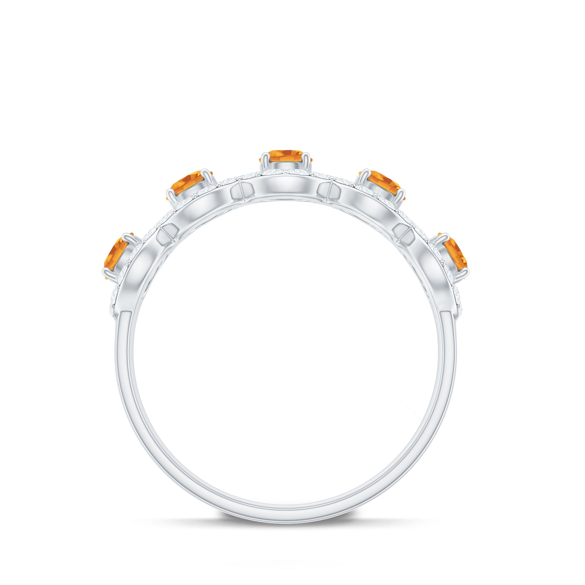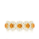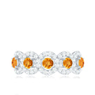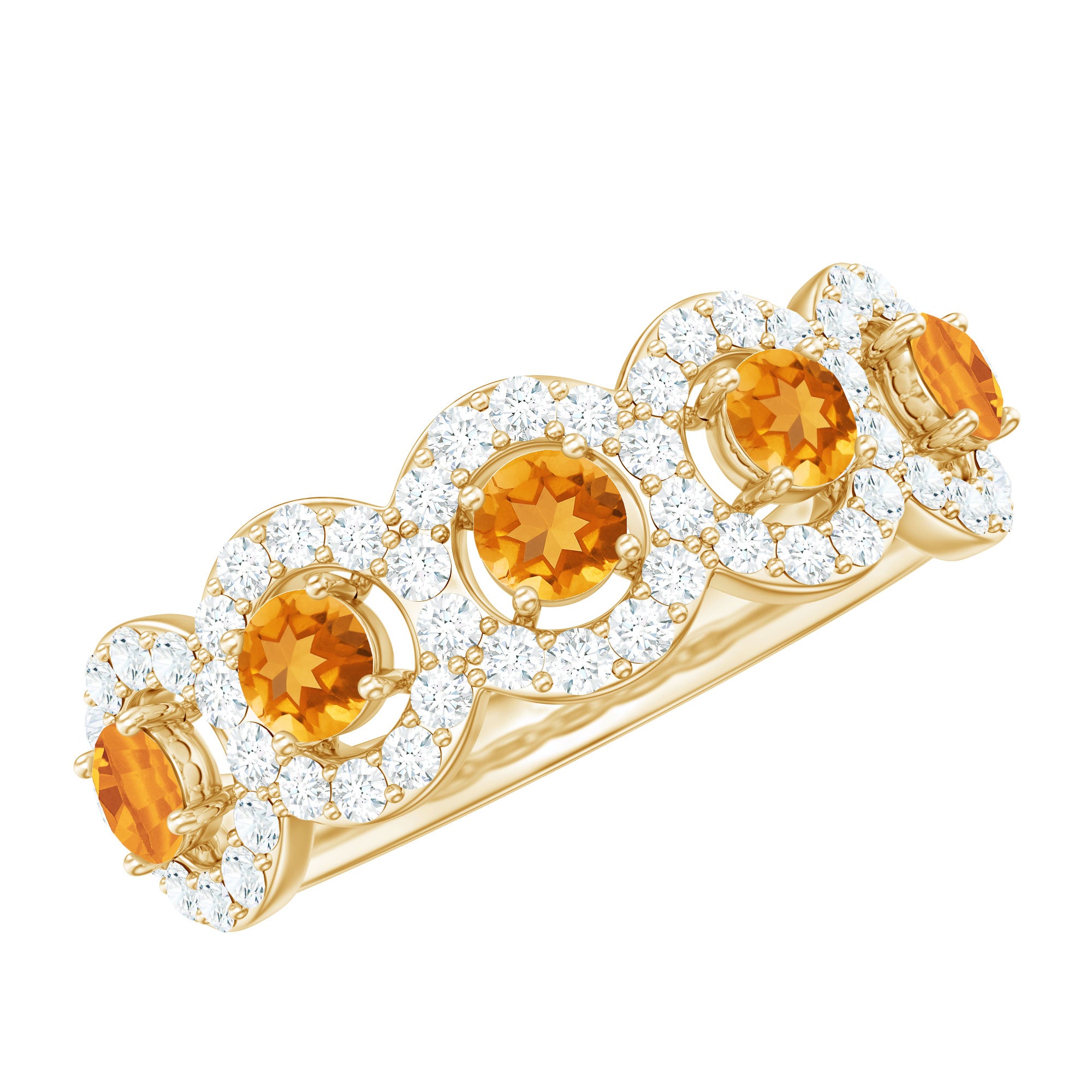 Certified Citrine and Diamond Classic Halo Half Eternity Band Ring