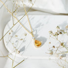 Warm golden tones meet effortless elegance in this Citrine Pendant Necklace designed to capture the essence of November’s birthstone. A vibrant 8X10 MM pear cut citrine of AAA quality takes center stage, full of personality and symbolic meaning like joy, abundance, and vitality. Surrounding the center stone is a brilliant halo of lab grown diamonds (EF-VS quality), carefully set to enhance the depth and fire of the citrine. Just above the teardrop shape, a single round lab grown diamond creates a smooth transition from the stone to the sleek silver bail. Crafted in 14k yellow gold plated sterling silver, the Teardrop Necklace offers a polished finish with durability that is built for daily wear. The sturdy cable chain sits comfortably against the skin and holds the Citrine and Diamond Necklace in place with subtle elegance. Great for meaningful gifting or simply elevating your everyday style, the Pear Shaped Necklace arrives in a beautifully designed signature box, ready to become a favorite piece in any jewelry collection. With its glowing color and delicate sparkle, the Halo Necklace makes a thoughtful choice for birthdays, milestones, or personal moments that deserve a little shine.
