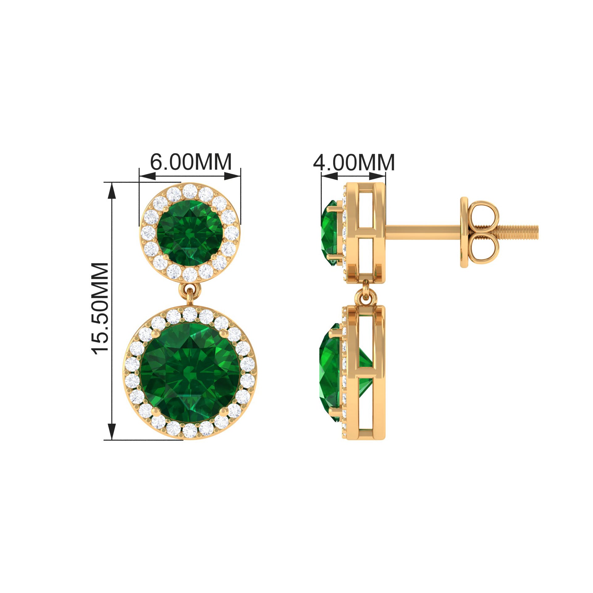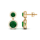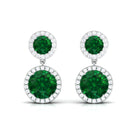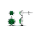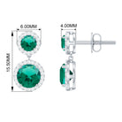 Certified Created Emerald and Diamond Halo Dangle Earrings