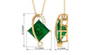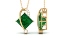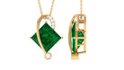 Certified Created Emerald Princess Cut Solitaire Diagonal Pendant with Diamond