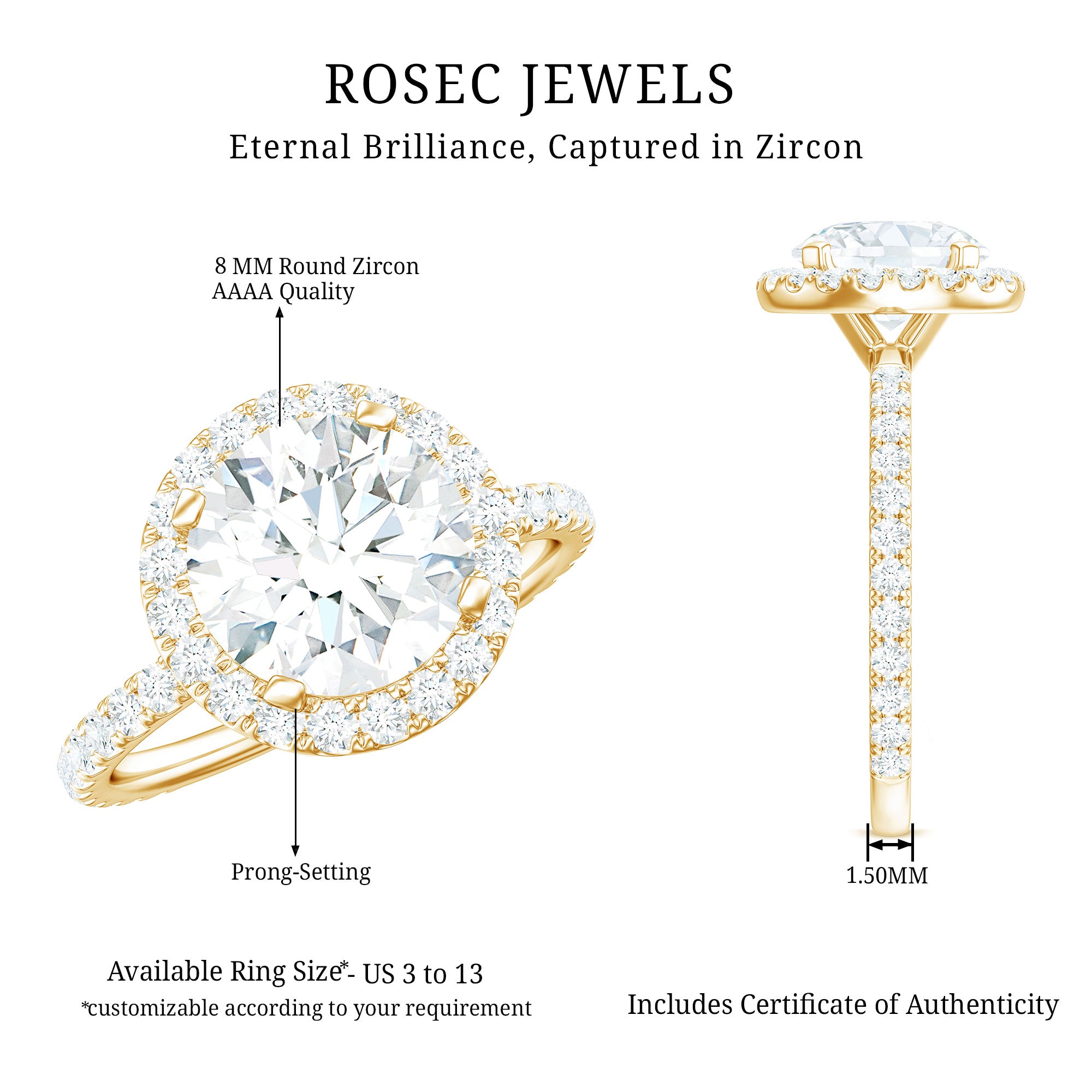 Light up her universe with this dazzling Round Halo Engagement Ring that sparkles like crazy. This absolutely stunning Zircon Engagement Ring will make her fall in love all over again. The Bliss features a gorgeous Round Cut Cubic Zirconia cradled in an absolutely gorgeous halo and side stones.